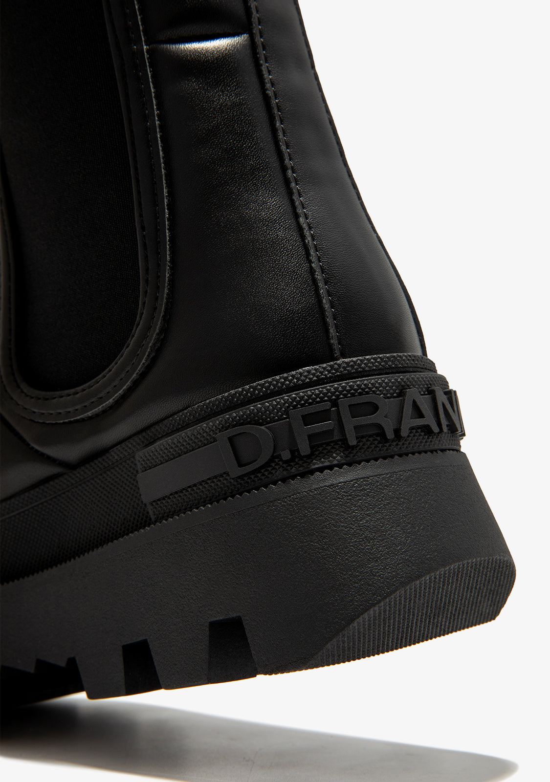This D.Franklin model in black features an elastic band on its side for a perfect fit. Its track-style sole provides unmatched grip. It features our logo and emblem embossed on the wedge and toe.