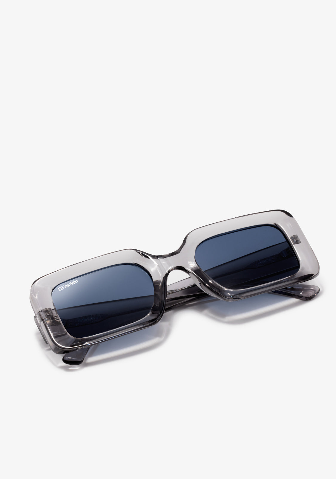 Sunglasses with rectangular frames and transparent finish. Inspired by the landscapes of the places we want to travel.