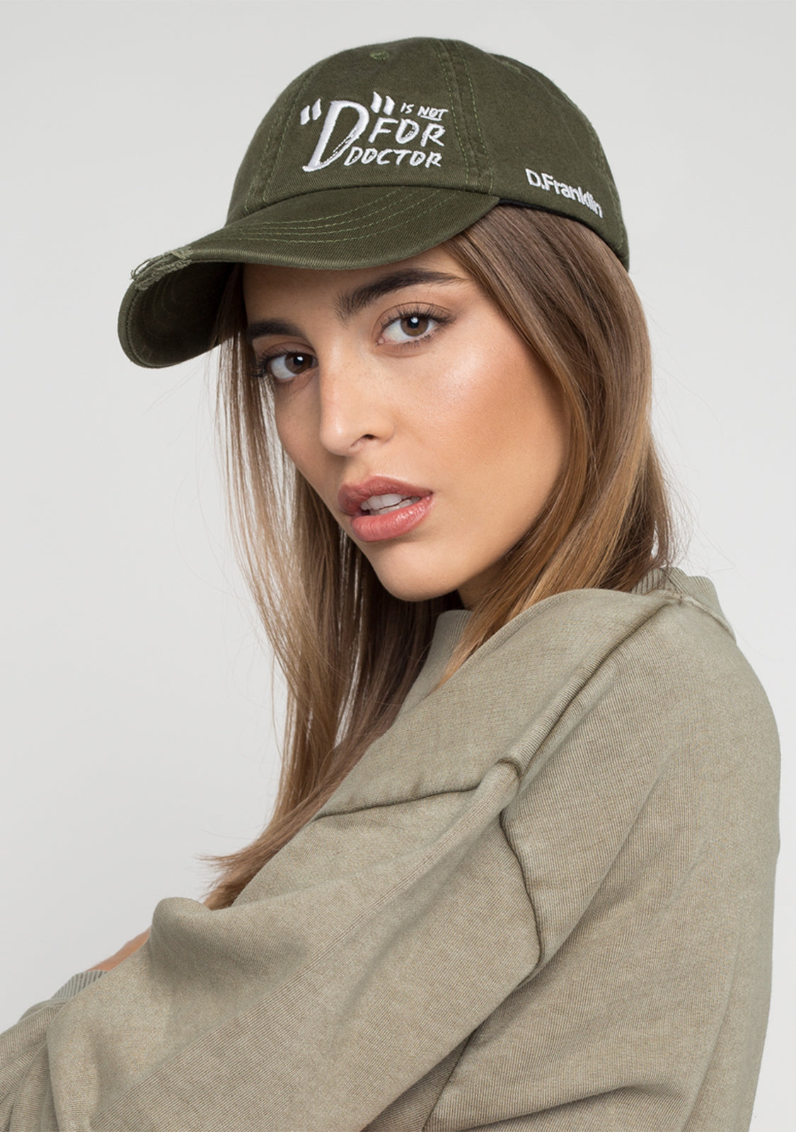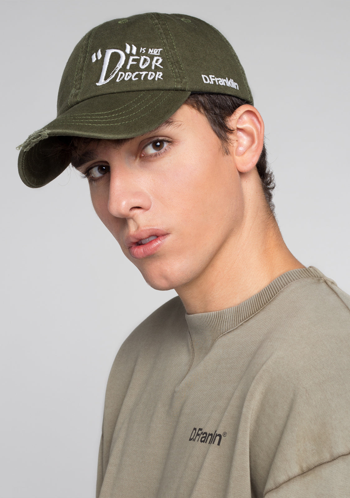 Join the D.Franklin movement with its claim "D. is not for Doctor". Made with the best materials, D. is not for Cap Khaki brings curved visor and embroidered text.
