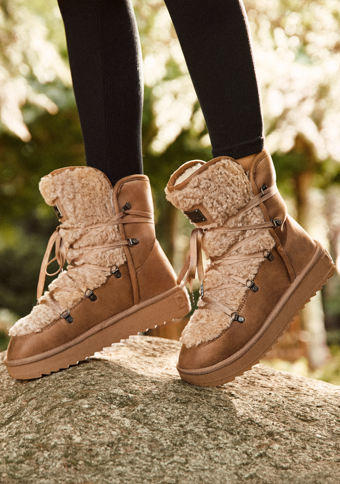 These brown boots feature high-quality microfiber fabric. The redesigned sole provides a lighter weight for a more comfortable ride. It also features our custom heel badge. Multi-position mountain-style laces provide optimal support and reflective detailing. Plus, a faux fur lining adds the ultimate winter touch.
