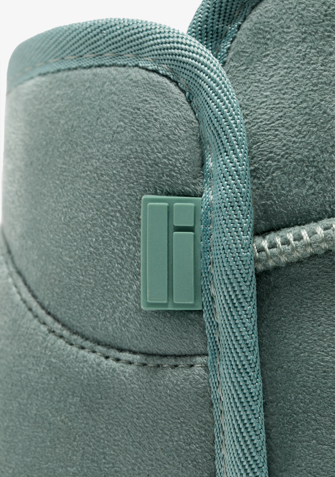 The asymmetric cut in soft green tones merges functionality and style, while the premium synthetic fur lining ensures exceptional warmth and softness with every step.