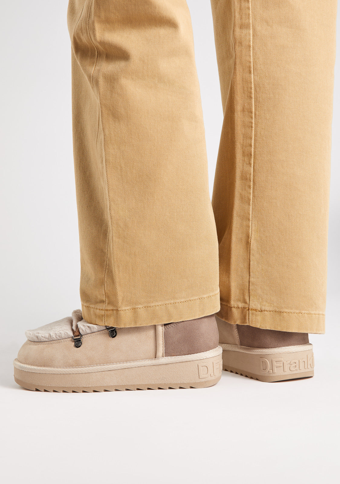 Asymmetrical cut shaft design in various beige tones with synthetic interior lining for superior warmth.