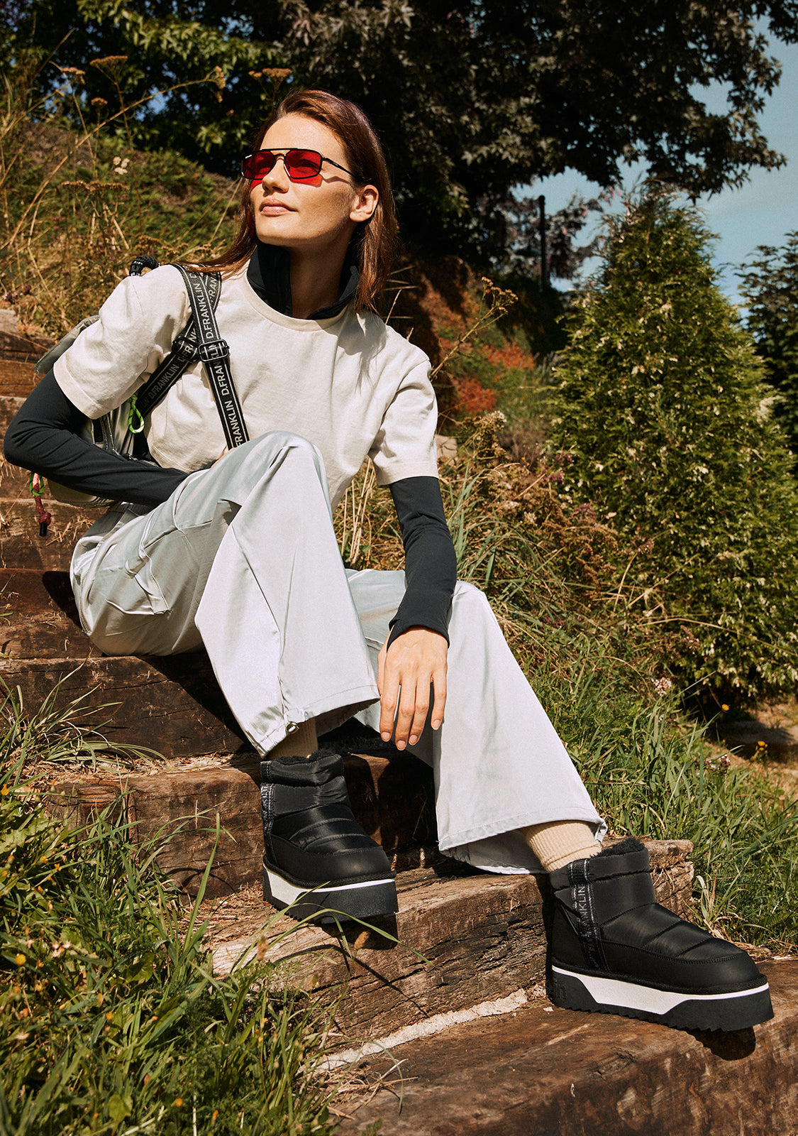 We define cold days with a warm and distinctive piece. This model is made with high-quality, lightweight, and flexible fabrics. Its double-height sole provides great comfort. Additionally, it features our custom emblem on both the heel and the side.