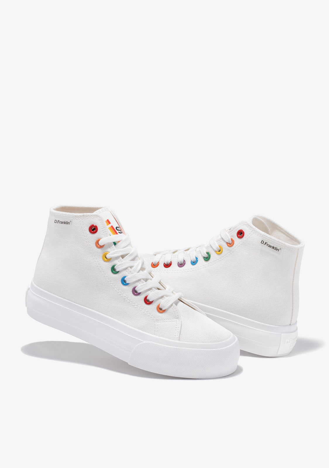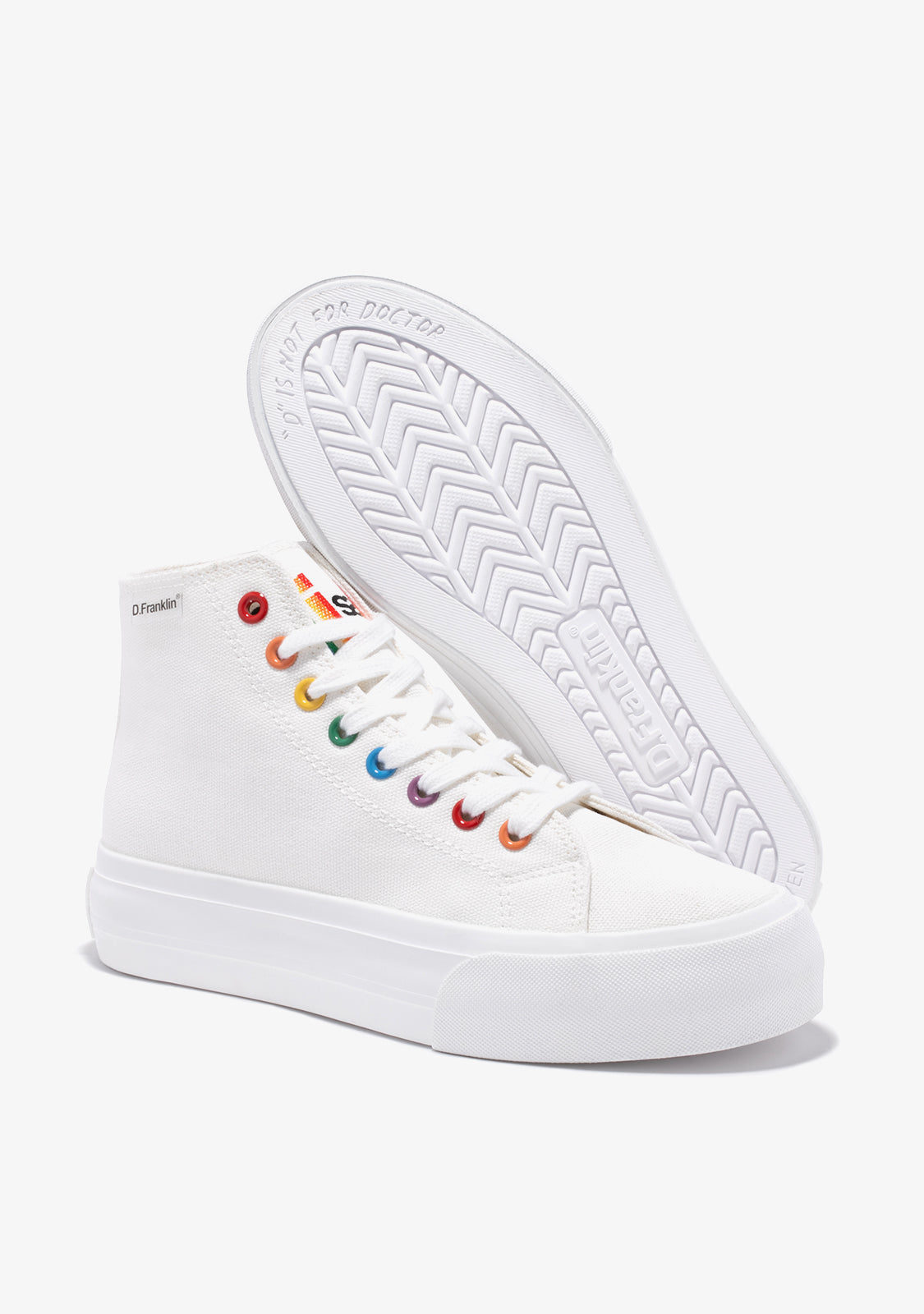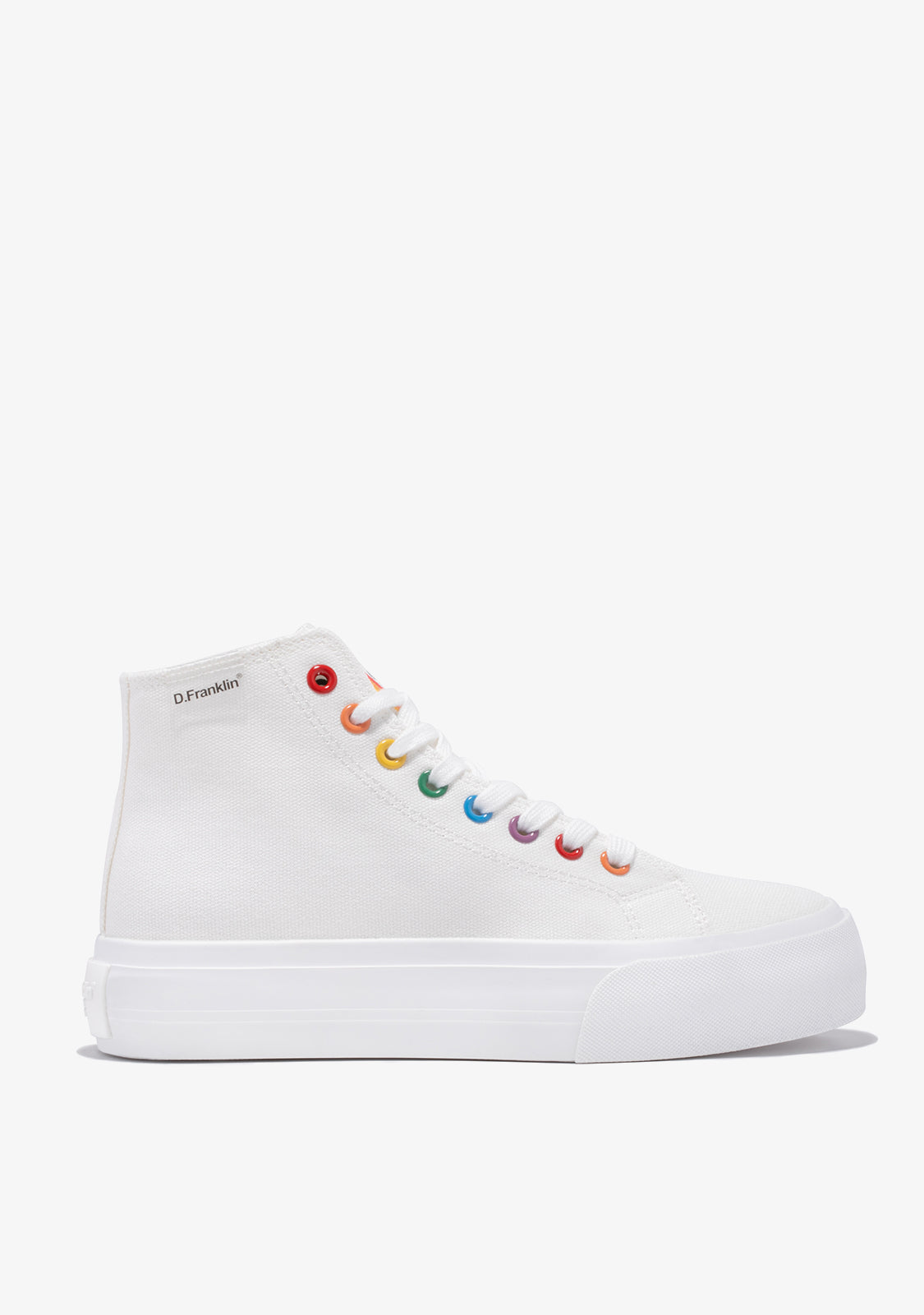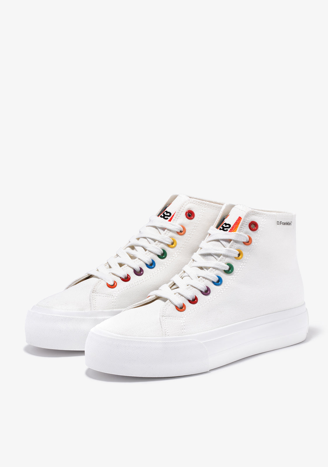 Let your creativity run wild. Bring life to every step. Inspired by the classic One Way high top trainer. Designed with red, orange, yellow, green and blue detailing for a subtle pop of colour. Constructed with an extra-light 4cm sole. Embossed logo at heel. White cotton laces.