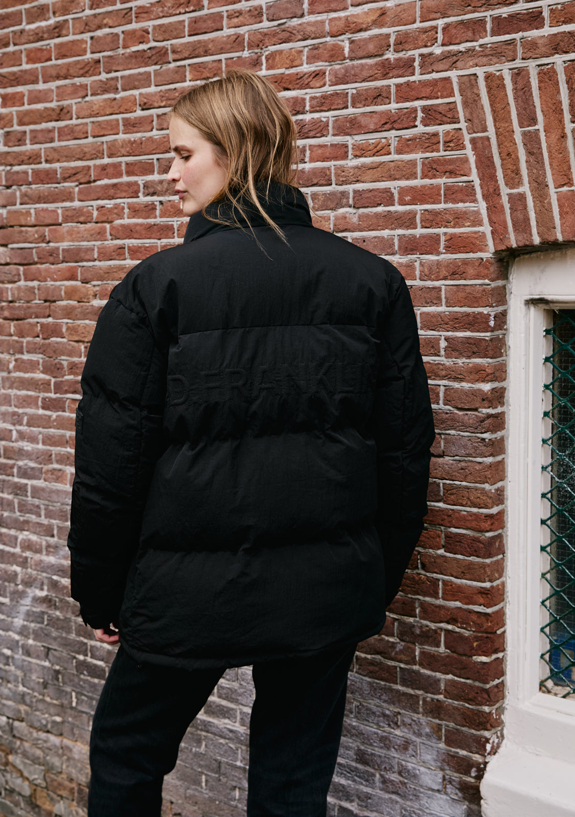 Black puffer jacket. A quilted piece for your cold-weather outfits.