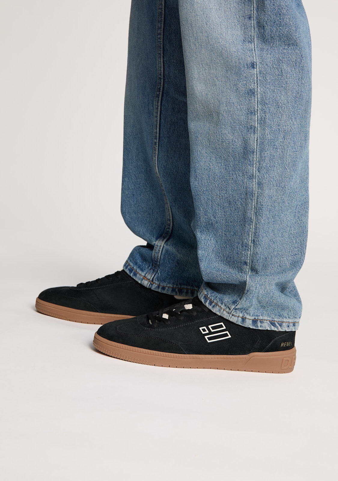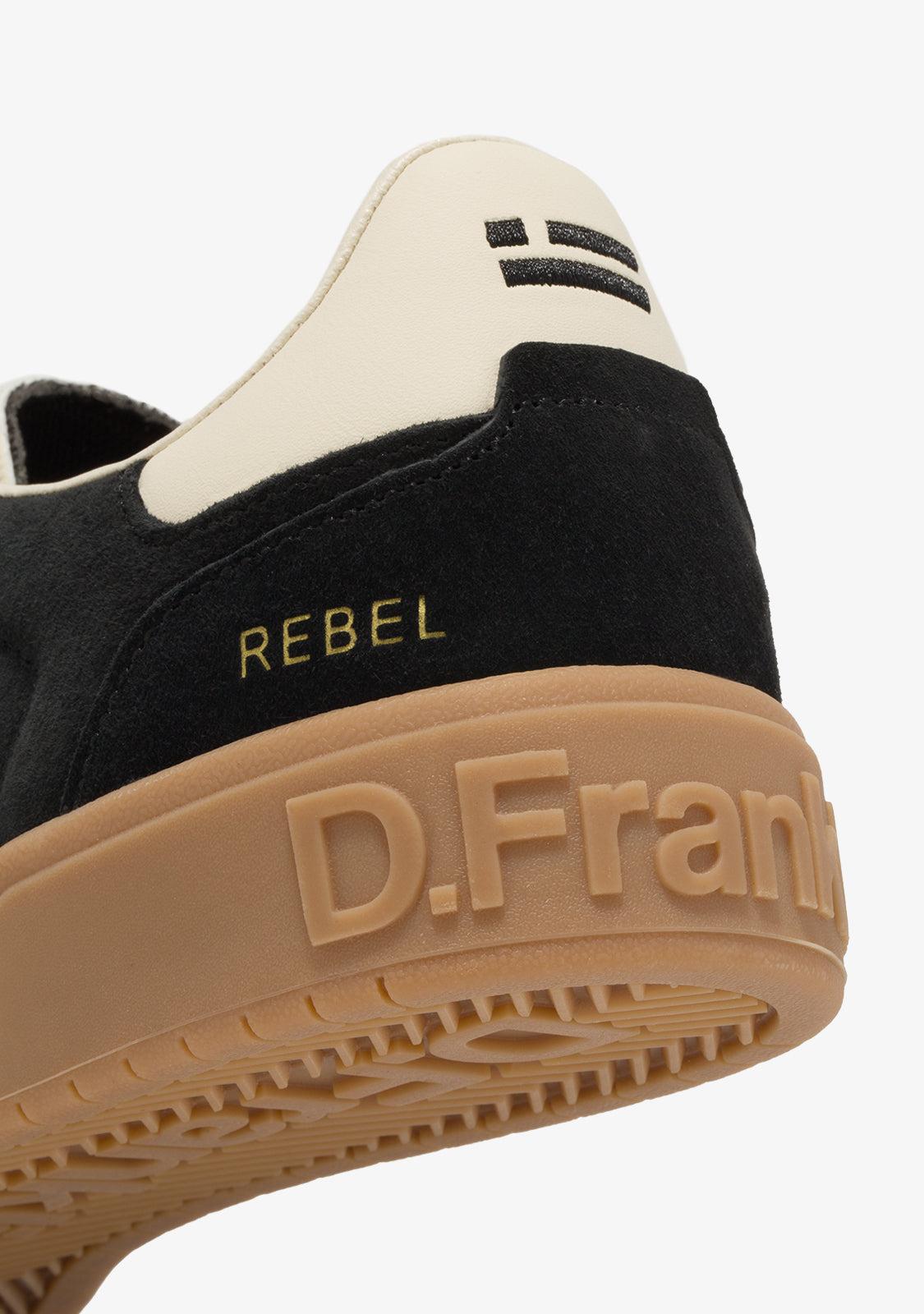 The Rebel D.Franklin frames a low-cut silhouette in dark tones. It features a selection of details that define its essence. It features an embossed logo on both the heel and sole, embroidered flag on the side as well as the name of the design on the back. The 2cm rubber sole provides superior grip and traction.
