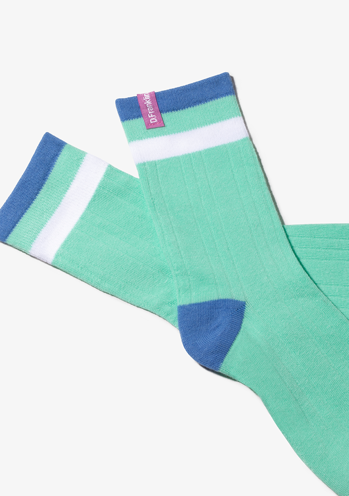 Retro 3 Stripes Cuff Socks 2 Pack Mint-White