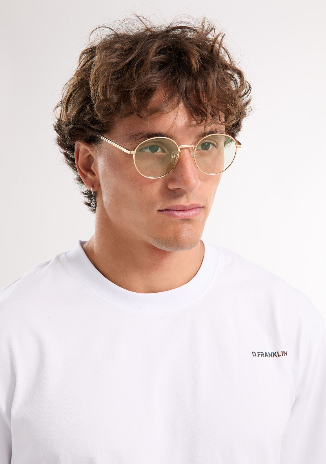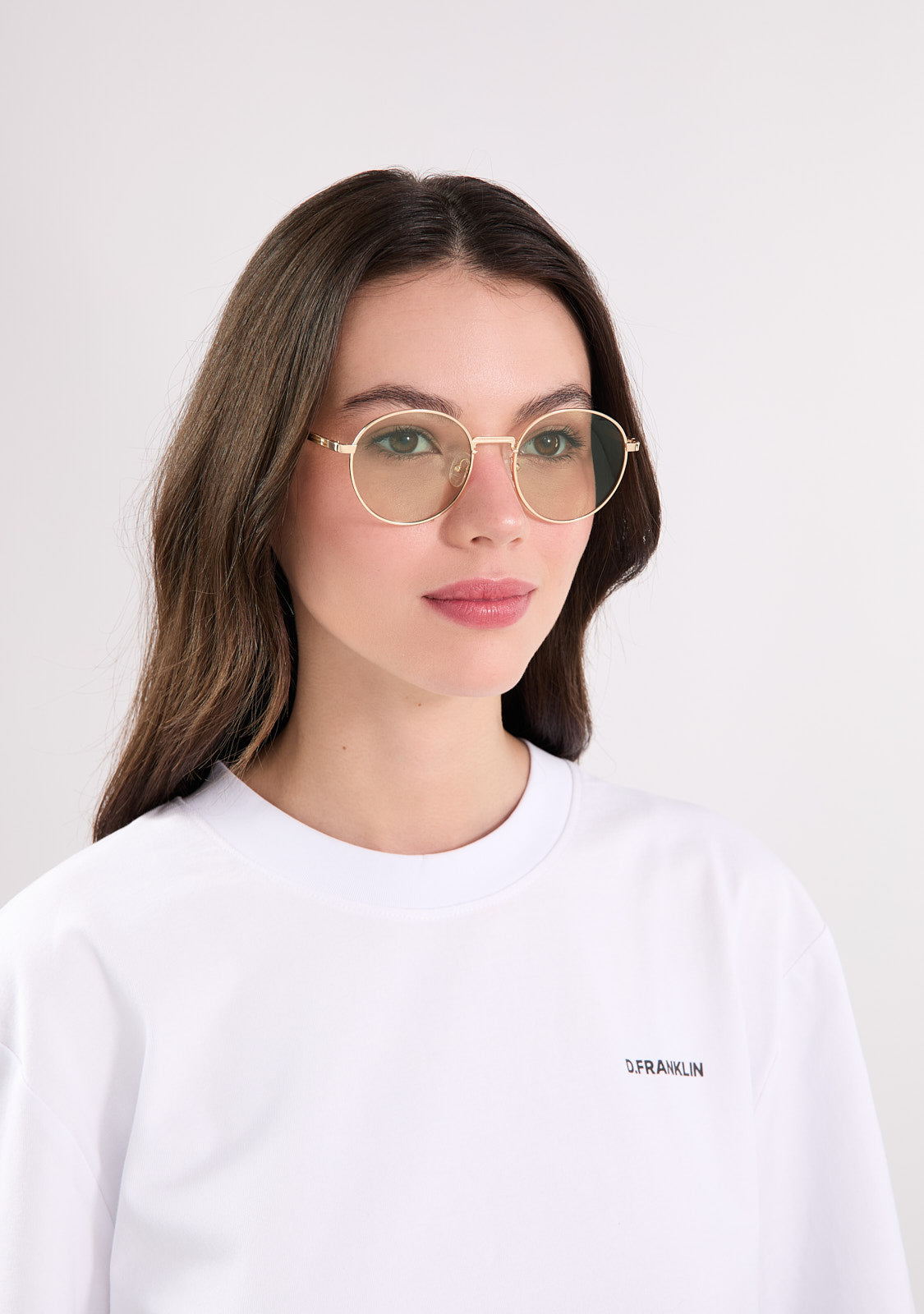 The Round Legacy design features a metallic finish with an oval aesthetic. Its gold-tone frame is paired with photochromic G15 anti-reflective lenses that allow a subtle view through and define the facial features. The front measures 139 mm, and the lens width is 52 mm. The temples are 140 mm long and incorporate our distinctive detailing. A retro yet minimalist piece to frame any outfit.
