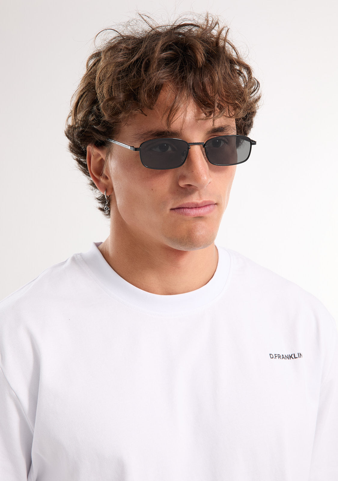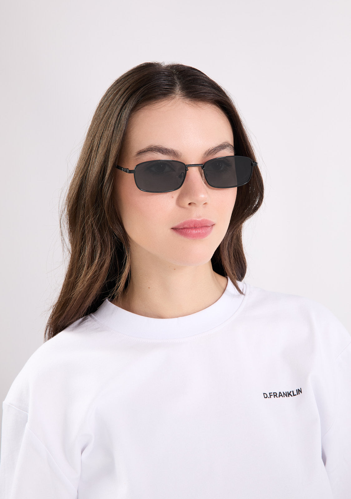 The Square Legacy design features a metallic finish with a rectangular aesthetic. Its black-tone frame is paired with smoke-effect, anti-reflective lenses that allow a subtle view through and define the facial features. The front measures 142 mm, and the lens width is 56 mm. The temples are 140 mm long and incorporate our distinctive detailing. A retro yet minimalist piece to frame any outfit.