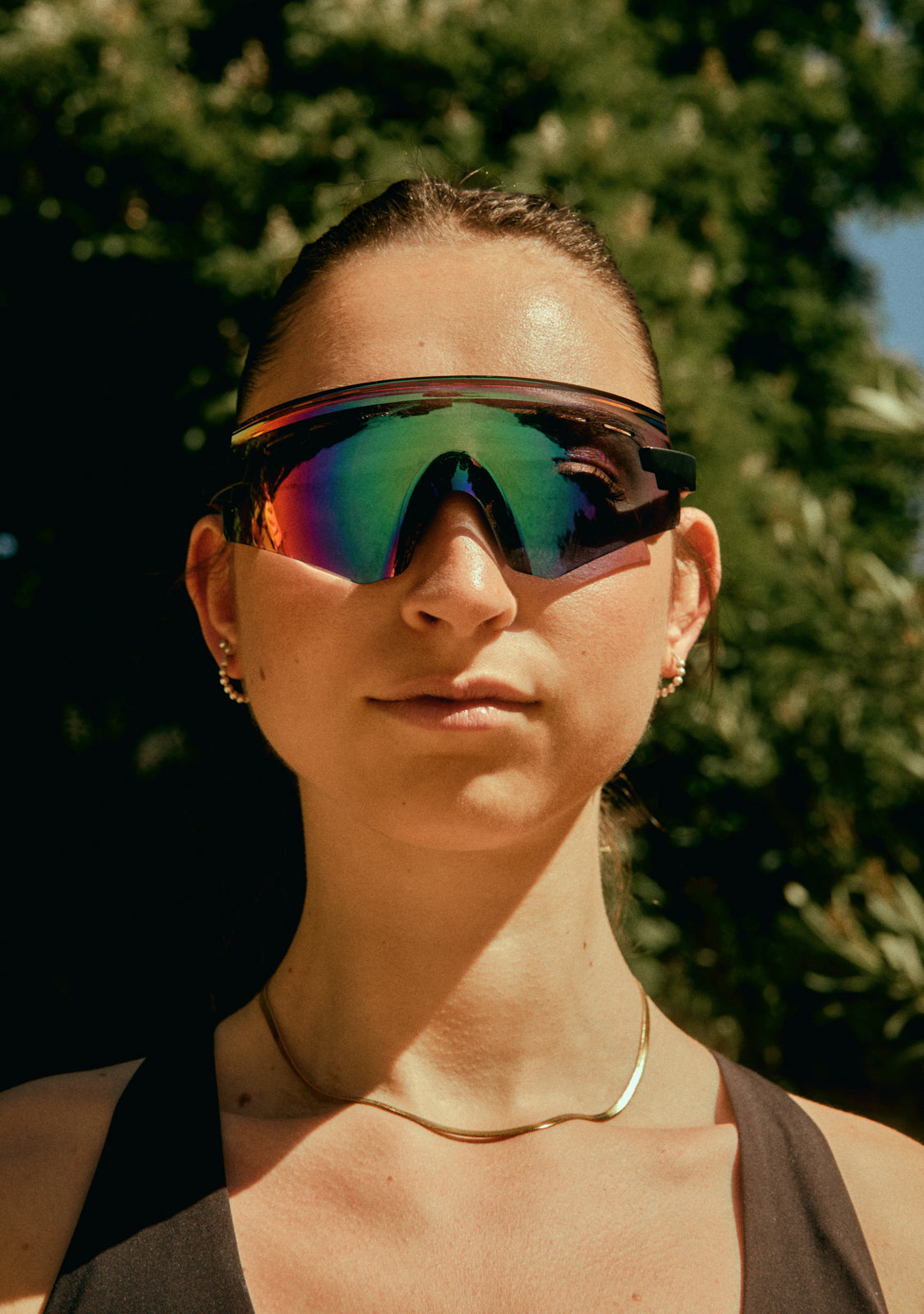 Rated Category 0–2, they are the perfect ally for high-sun training — from road cycling to trail running. The frameless, ultra-light TR90 frame with 6C curvature ensures a wraparound fit and lateral protection. Non-slip rubber pads and temple tips keep them stable, even in sweat or rain.