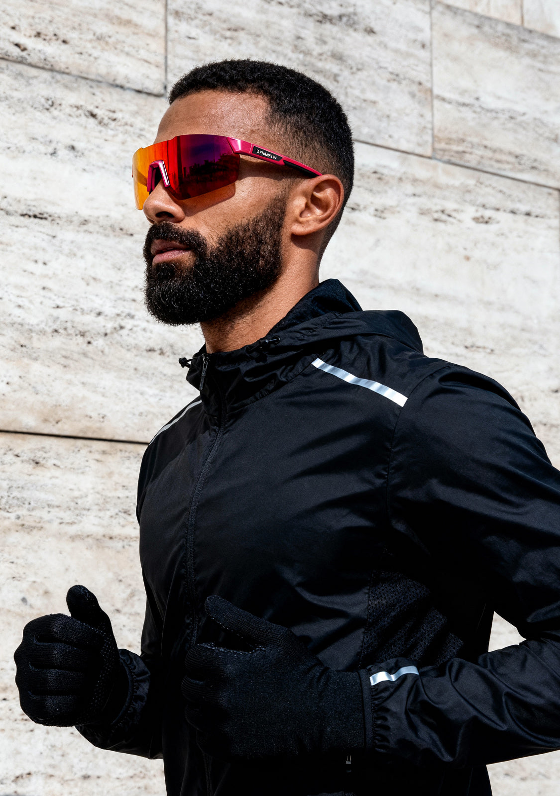 Mirrored sunglasses with high-tech aesthetics. Immerse yourself in a curved design inspired by the speed of the waves. Aerodynamic sunglasses created to break up your style.