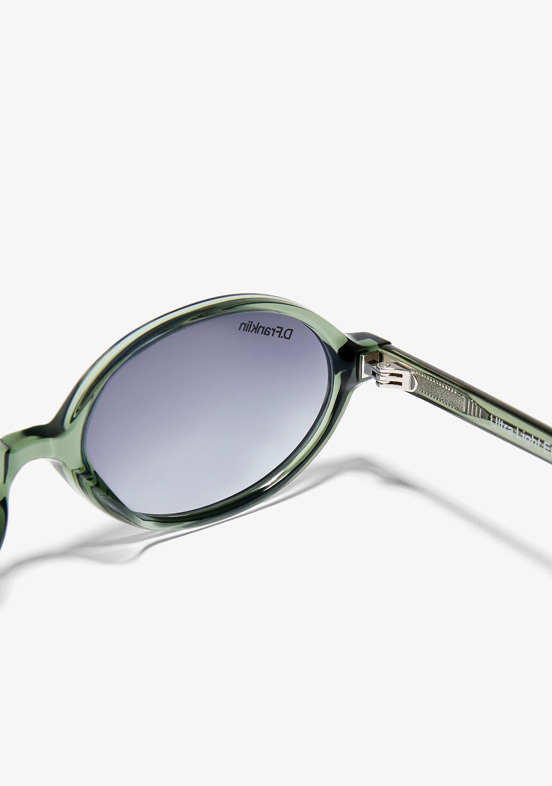 Discover the Ultra Light Ellipse Green / Grad Smoke by D.Franklin, sunglasses designed for those who seek to combine style and functionality in a unique accessory. With a TR90 frame and bridge, an ultra-lightweight and durable material, along with acetate temples, they provide a sturdy structure and comfortable fit for extended wear.