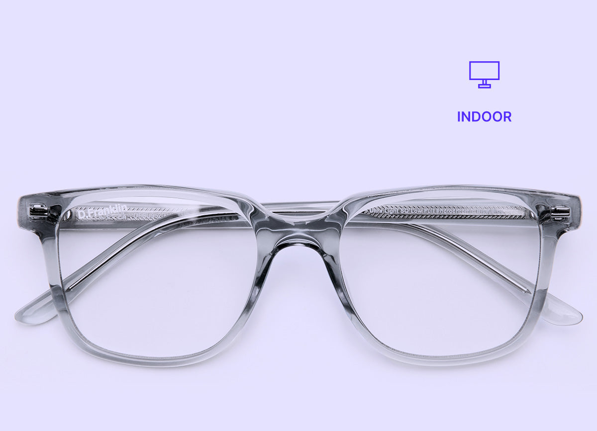 Designed for daily use, these glasses combine UV400, category 2, blue-block filter and photochromic lenses and frame that shift from clear to grey depending on light conditions.