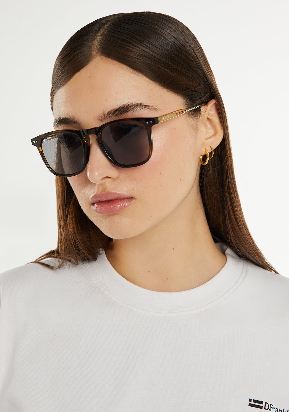 Sunglasses with rounded frames in brown tones. A classic piece for the most Uncommon of looks.