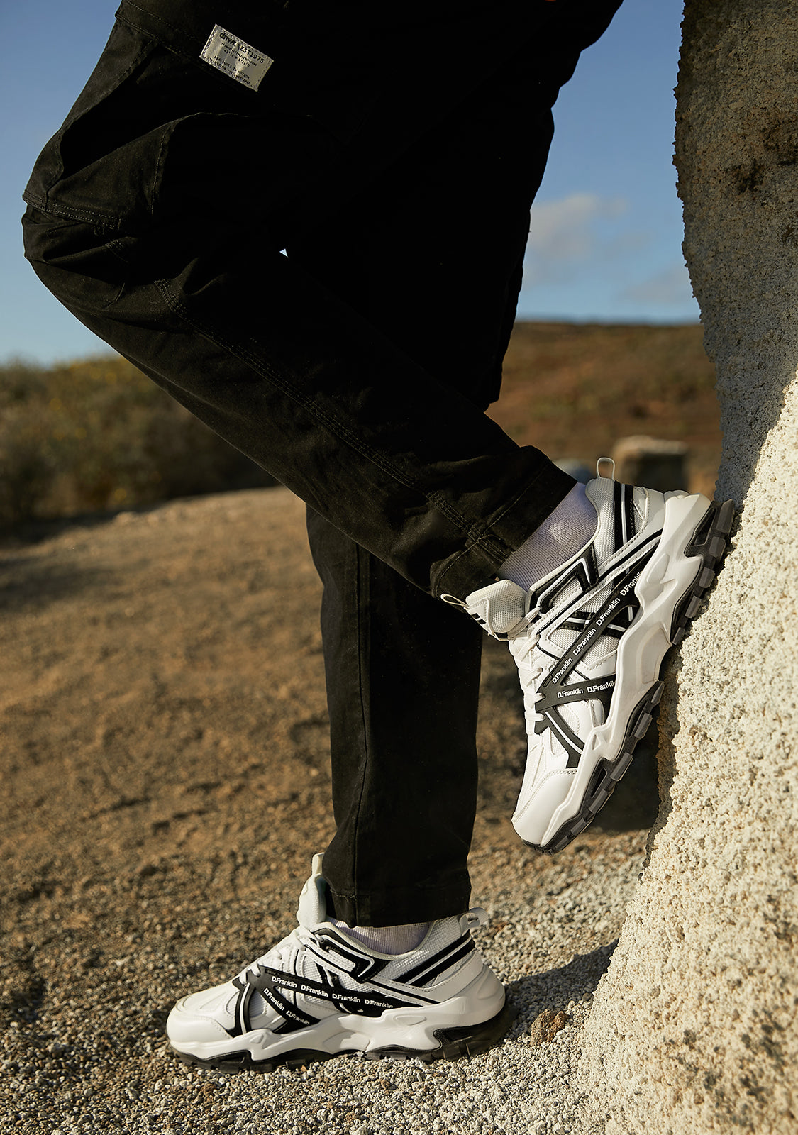 O modelo 347 nasceu para descobrir e explorar. Pronto para fluir diante de qualquer desafio. O seu alto gramagem malha de nylon e sola de TR de dupla densidade levam à criação de uma nova forma de expressão. Cidade e montanha no mesmo lugar. Além disso, criado com materiais Aprovados pela PETA-Vegan , puxadores de microfibra e material técnico.
