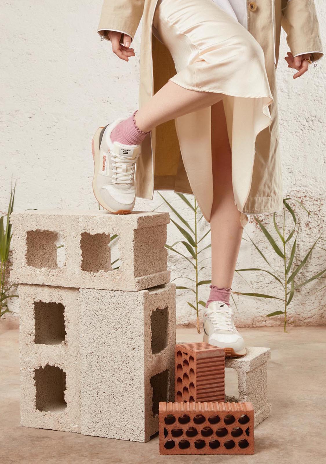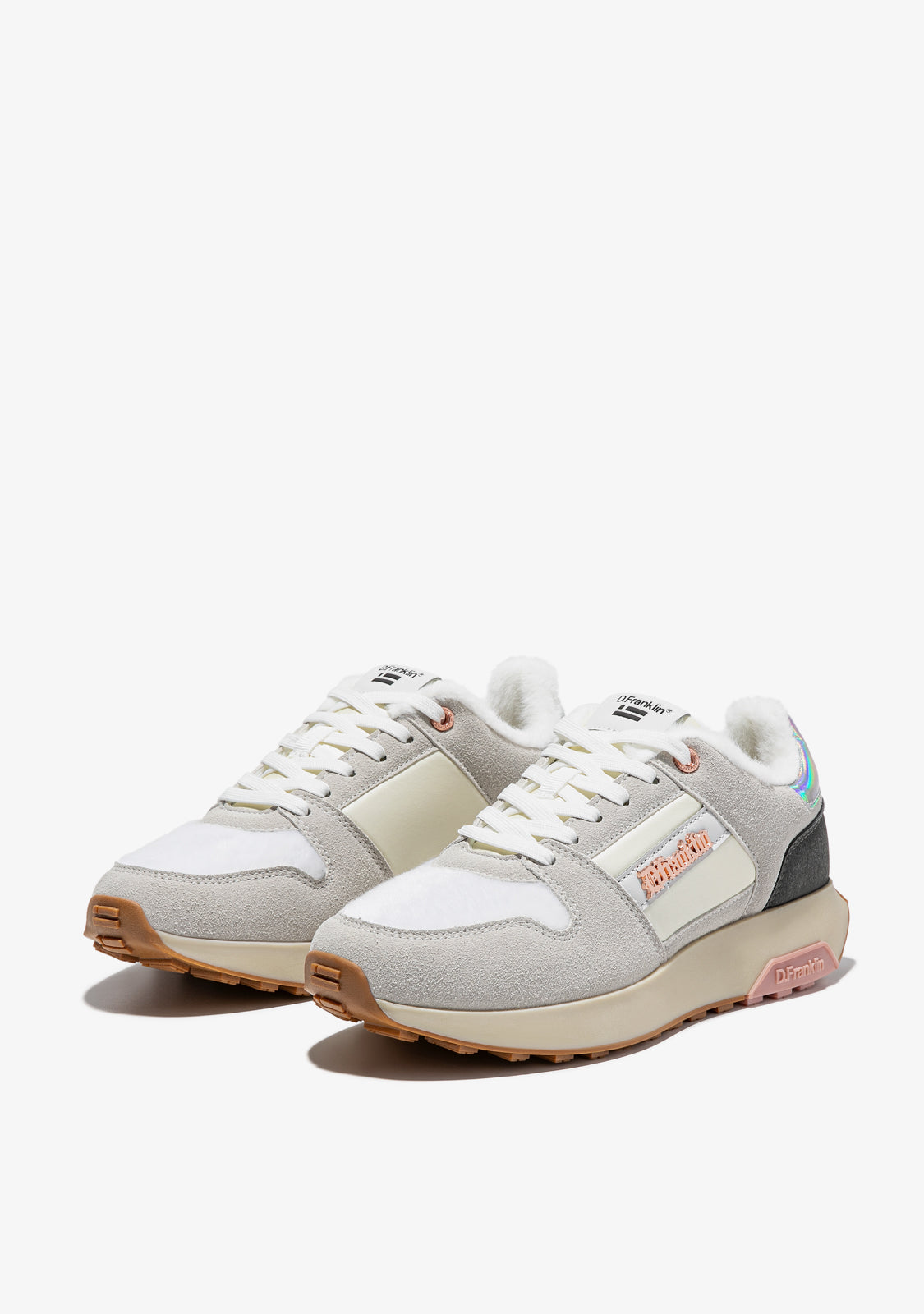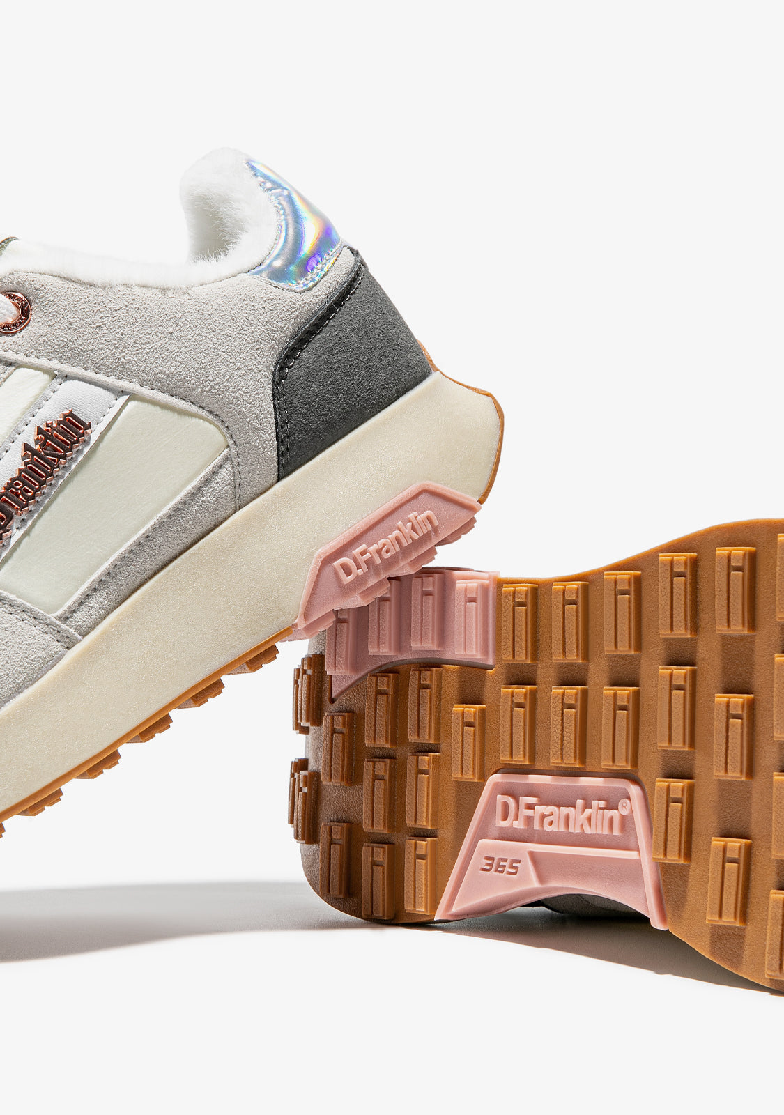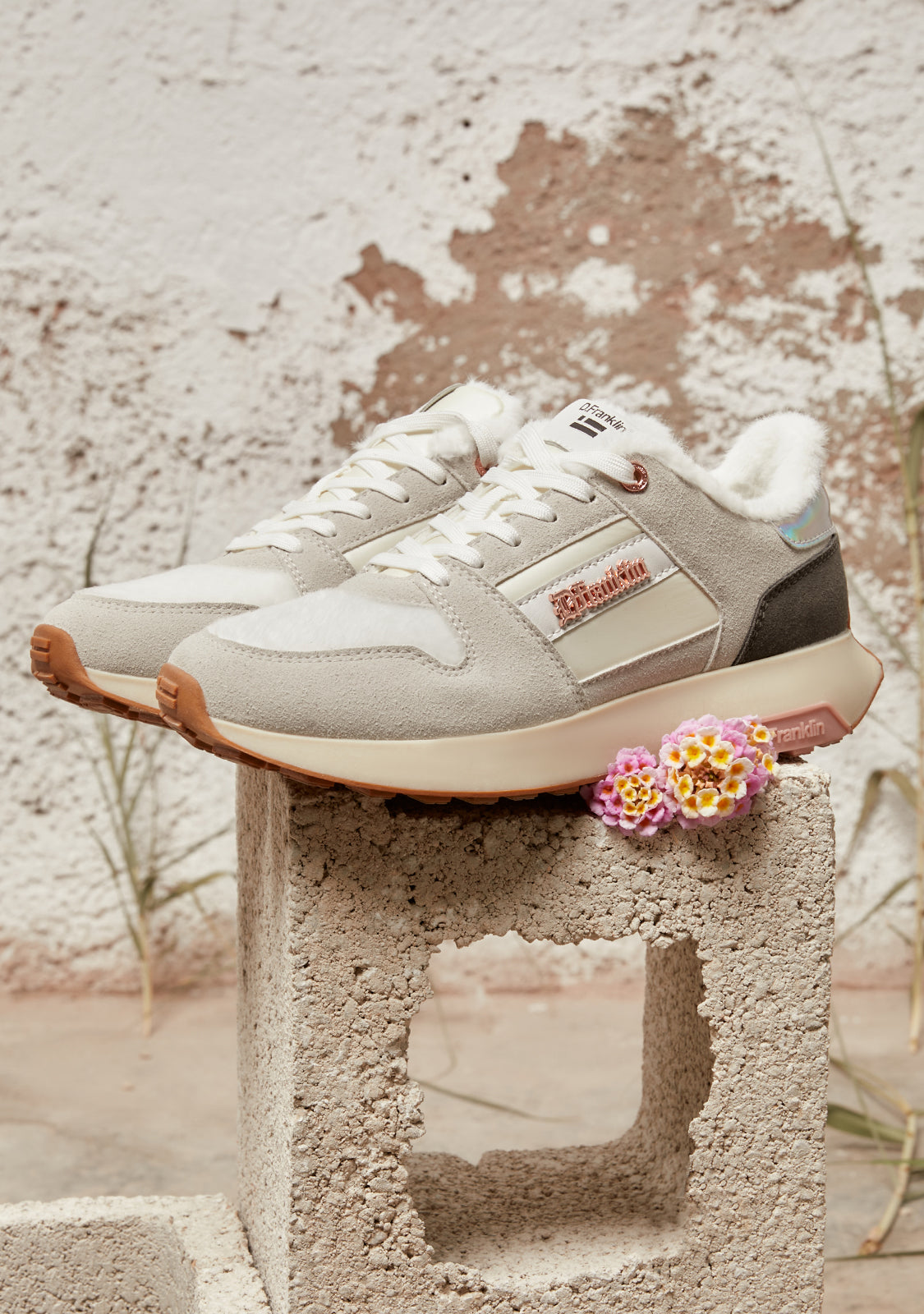 Ténis D.Franklin em tons neutros, projetados para ambientes frios sem sacrificar a estética urbana. Com uma silhueta atualizada criada para cobrir o terreno que ainda tem por descobrir.