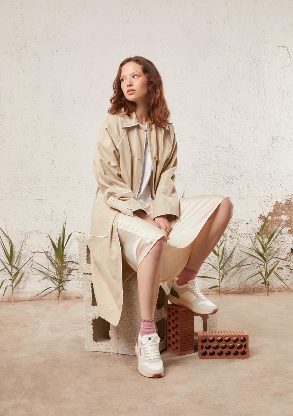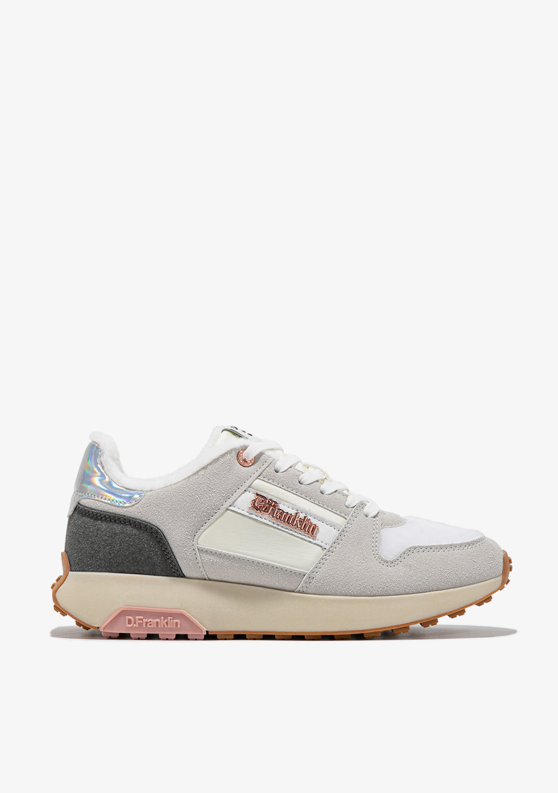 Este modelo combina a simplicidade dos tons neutros num design que se destaca pela sua unicidade. Apresenta a marca D.Franklin na lateral e atacadores de algodão para um ajuste perfeito. Também possui uma sola de dupla densidade. A primeira é feita de materiais reciclados para um piso confortável e leve e a segunda é estampada para tração.