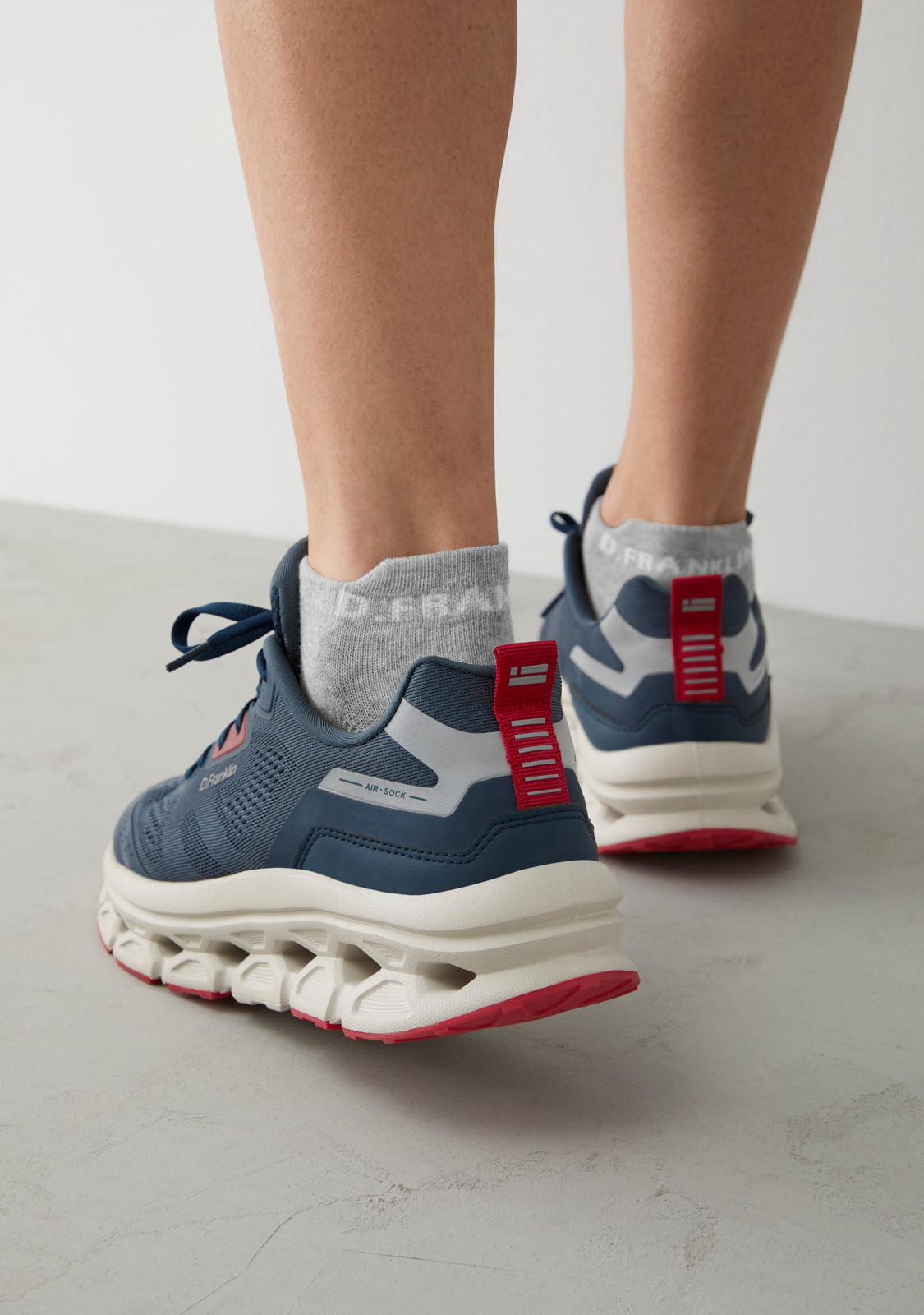 As Aero Dual Navy / Red da D.Franklin foram concebidas para correr e para os teus treinos diários. Têm um ajuste regular e fecho com atacadores para garantir uma boa fixação. A sola com plataforma proporciona uma elevação estável a cada passada, e contam com validação Biomechanical Run Comfort.