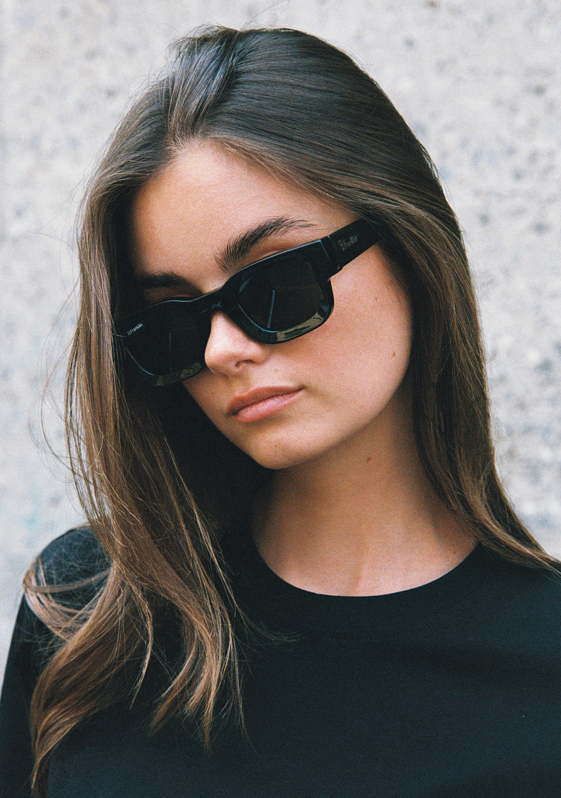 Bermuda Black Smoke é um design feito a partir de materiais inspirados no titânio. Armações grossas e lentes fumadas representam os nossos diferentes prismas, moldados numa silhueta retangular oversized especialmente desenhada para interagir com novos espaços.
