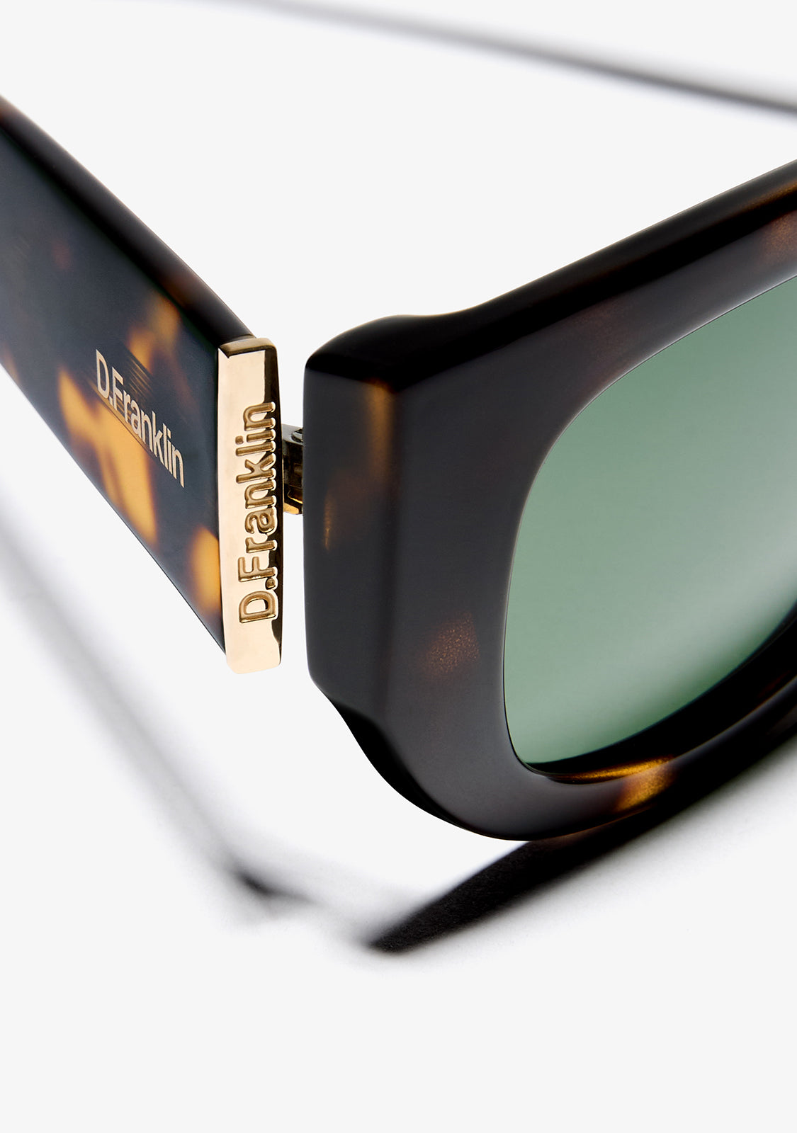 Feitos de TR90 leve, a armação é durável e confortável para o uso durante todo o dia, finalizada com detalhes subtis de D.Franklin nas hastes e nas lentes. As lentes polarizadas reduzem o brilho para uma visão mais clara, enquanto a proteção UV400 e a filtragem de Categoria 3 oferecem uma cobertura fiável em condições de muita luz.