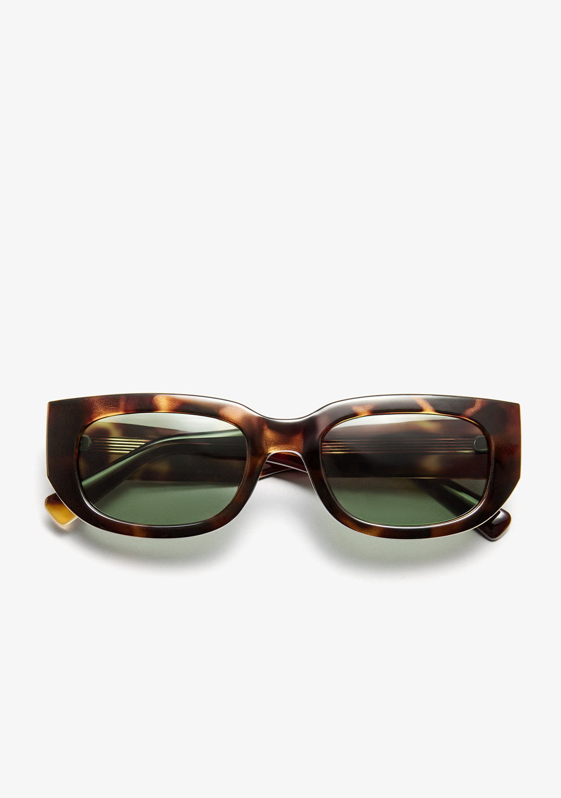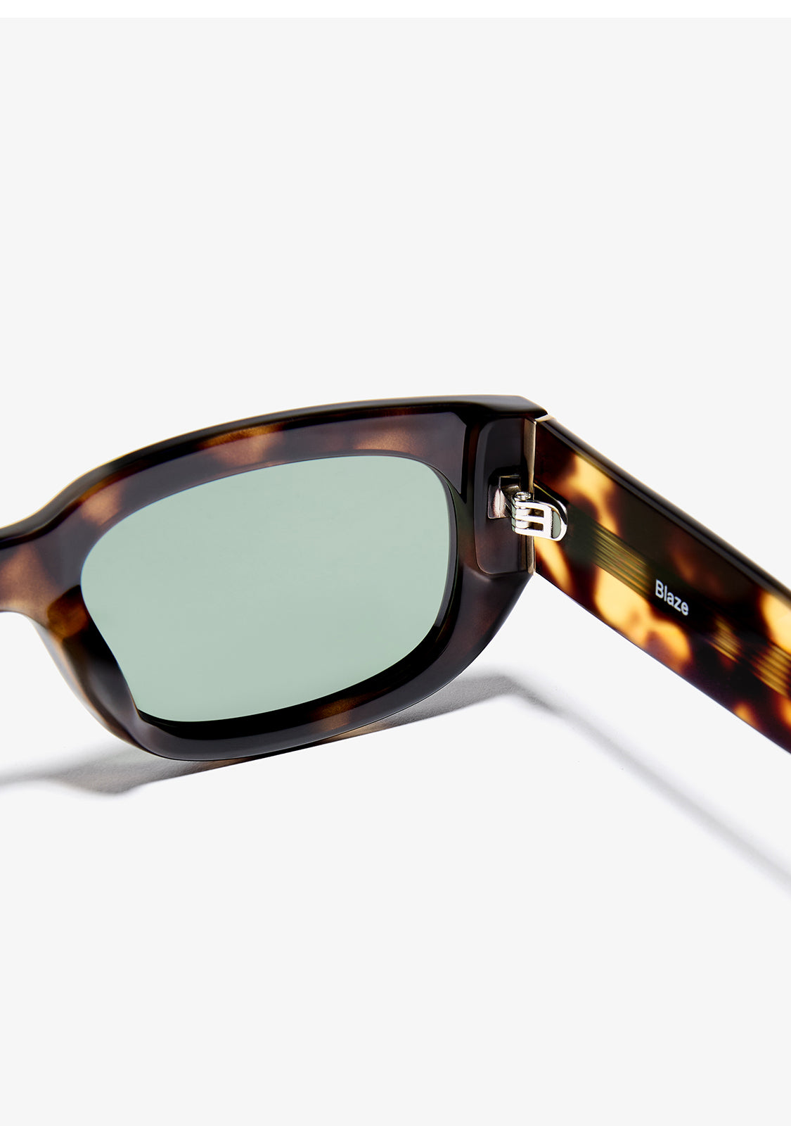 Os óculos de sol Blaze Tort / G15 apresentam uma silhueta retangular ousada com uma armação elegante em tortoiseshell e lentes verdes. Inspirados por formas retro e refinados com linhas limpas, eles acrescentam um toque de confiança aos looks do dia-a-dia.