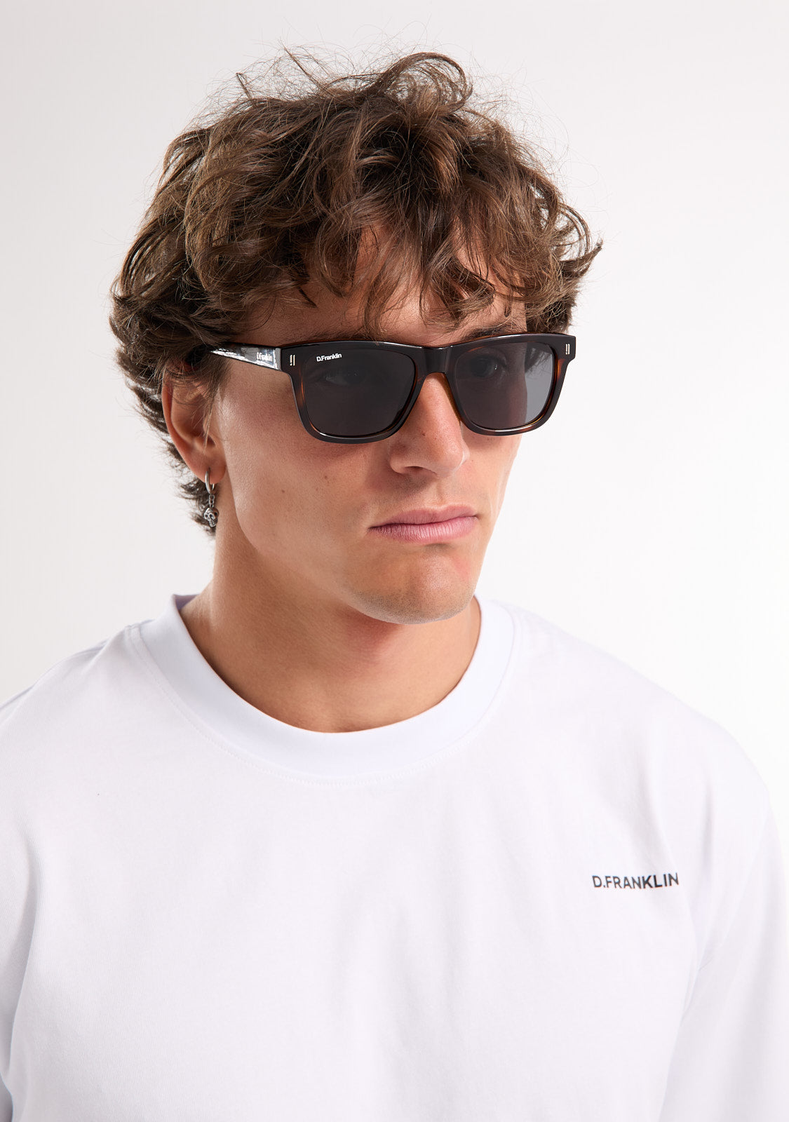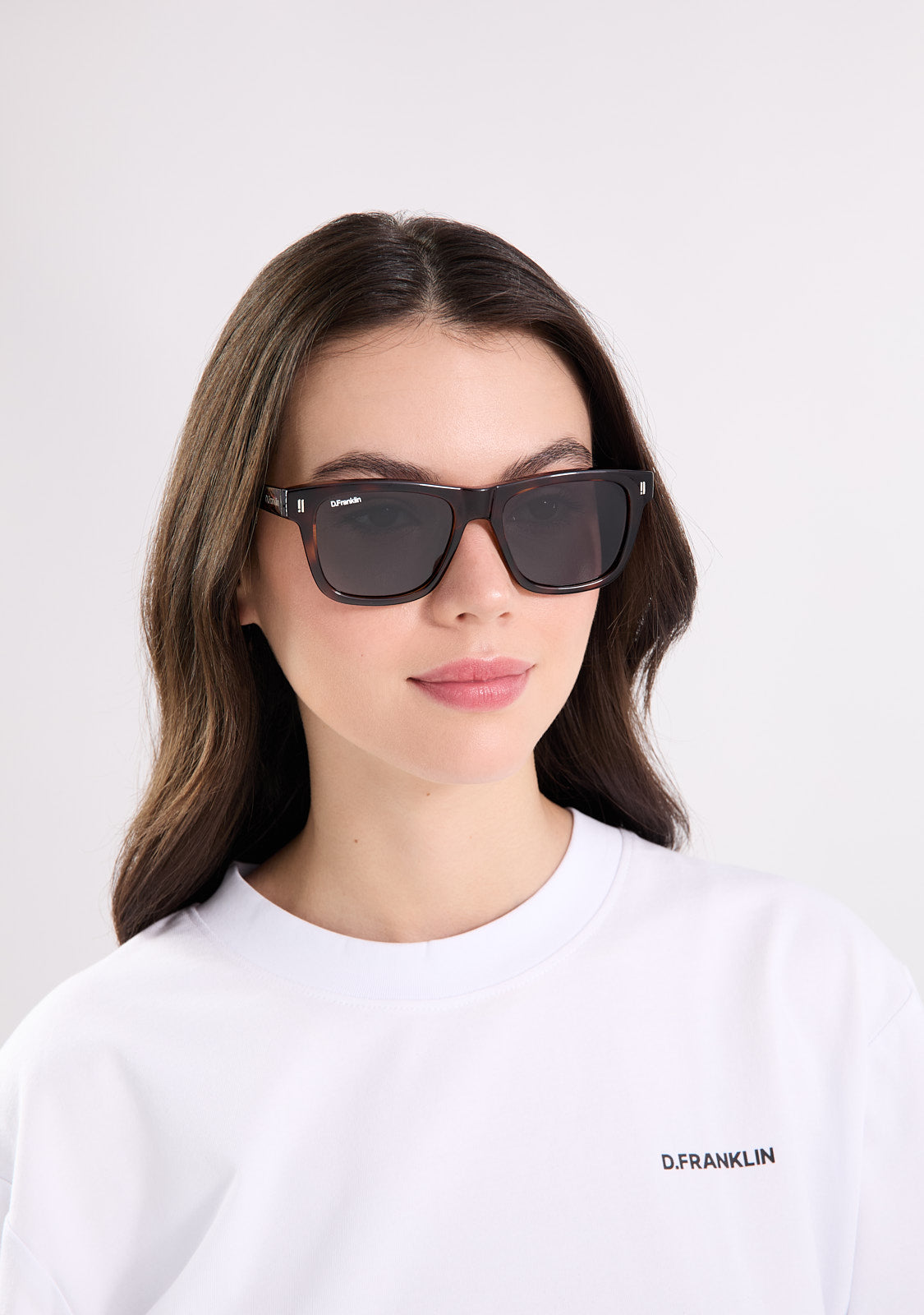 Os Boyd Tort / Black da D.Franklin encontram o equilíbrio perfeito entre design moderno e funcionalidade. Estes óculos de sol, com uma armação e ponte em TR90, são ultra-leves e duráveis, enquanto as hastes em acetato proporcionam conforto adicional e durabilidade.