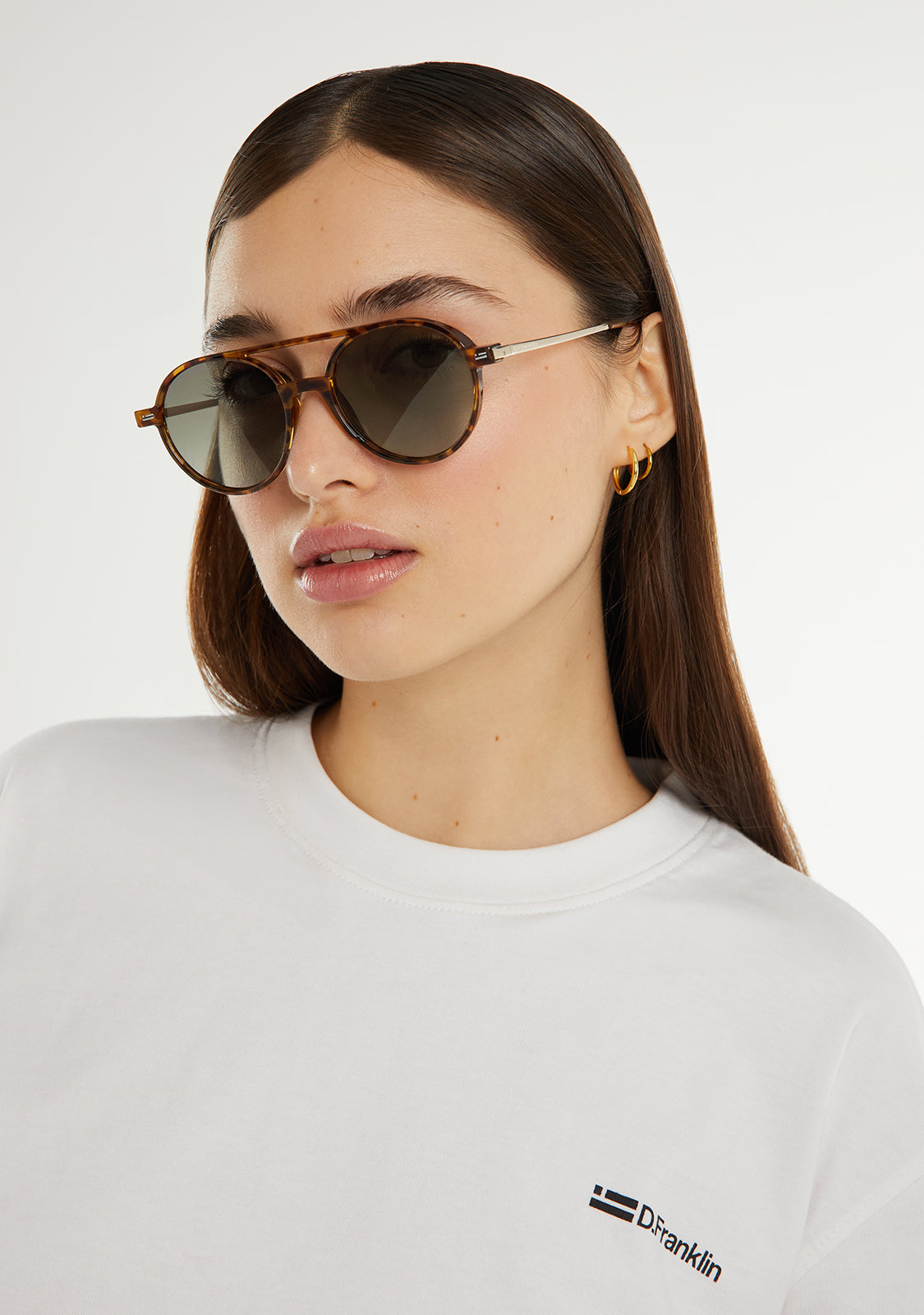 Óculos de sol estilo aviador com armação redonda. Um design unissexo que redefine a forma clássica.