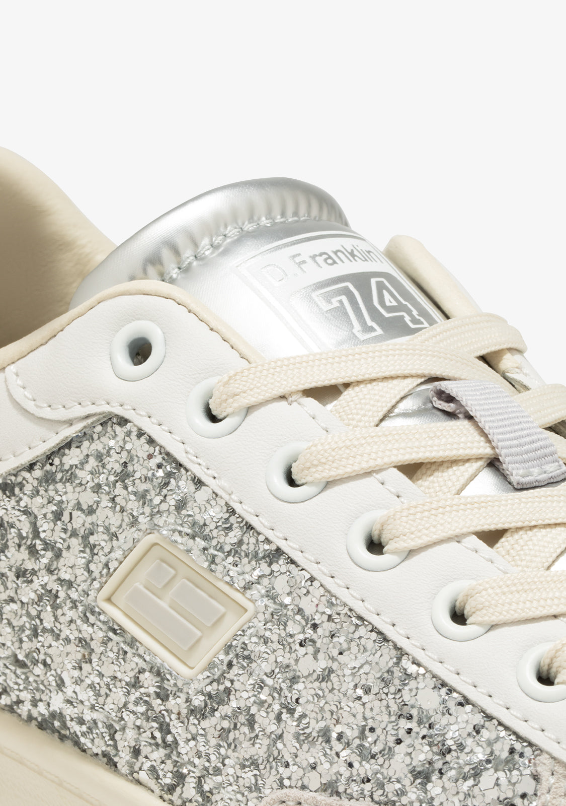 Brilhe com estilo a cada passo do caminho com os ténis Court Basic Glitter Silver da D.Franklin, feitos para aqueles que querem destacar-se. Este modelo apresenta um acabamento prateado com detalhes em glitter, acrescentando um toque ousado e sofisticado aos seus looks.