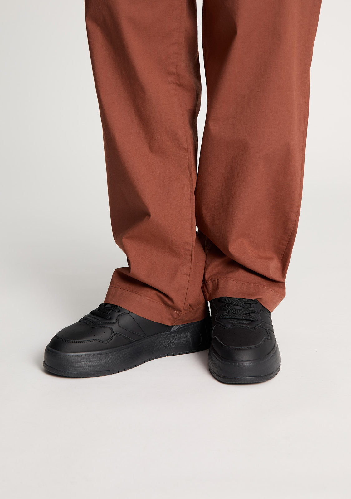 Treinadores minimalistas com uma inspiração desportiva. O design icónico da nossa iconografia transcende o campo e invade as ruas. Conecte a sua estética D.Franklin com um emblema de corte retro e detalhes simples.