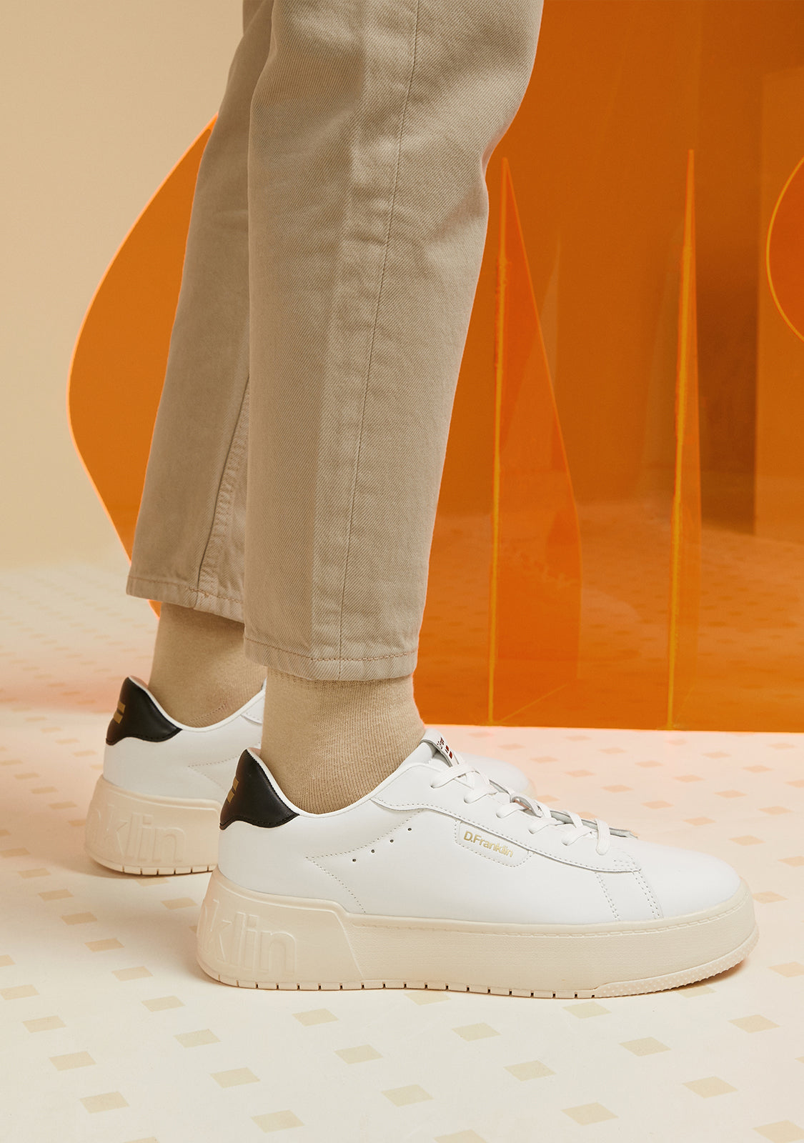 Ténis minimalistas com uma inspiração desportiva. O design icónico da nossa iconografia transcende o court e invade as ruas. Conecte a sua estética D.Franklin com um emblema de corte retro e detalhes simples.
