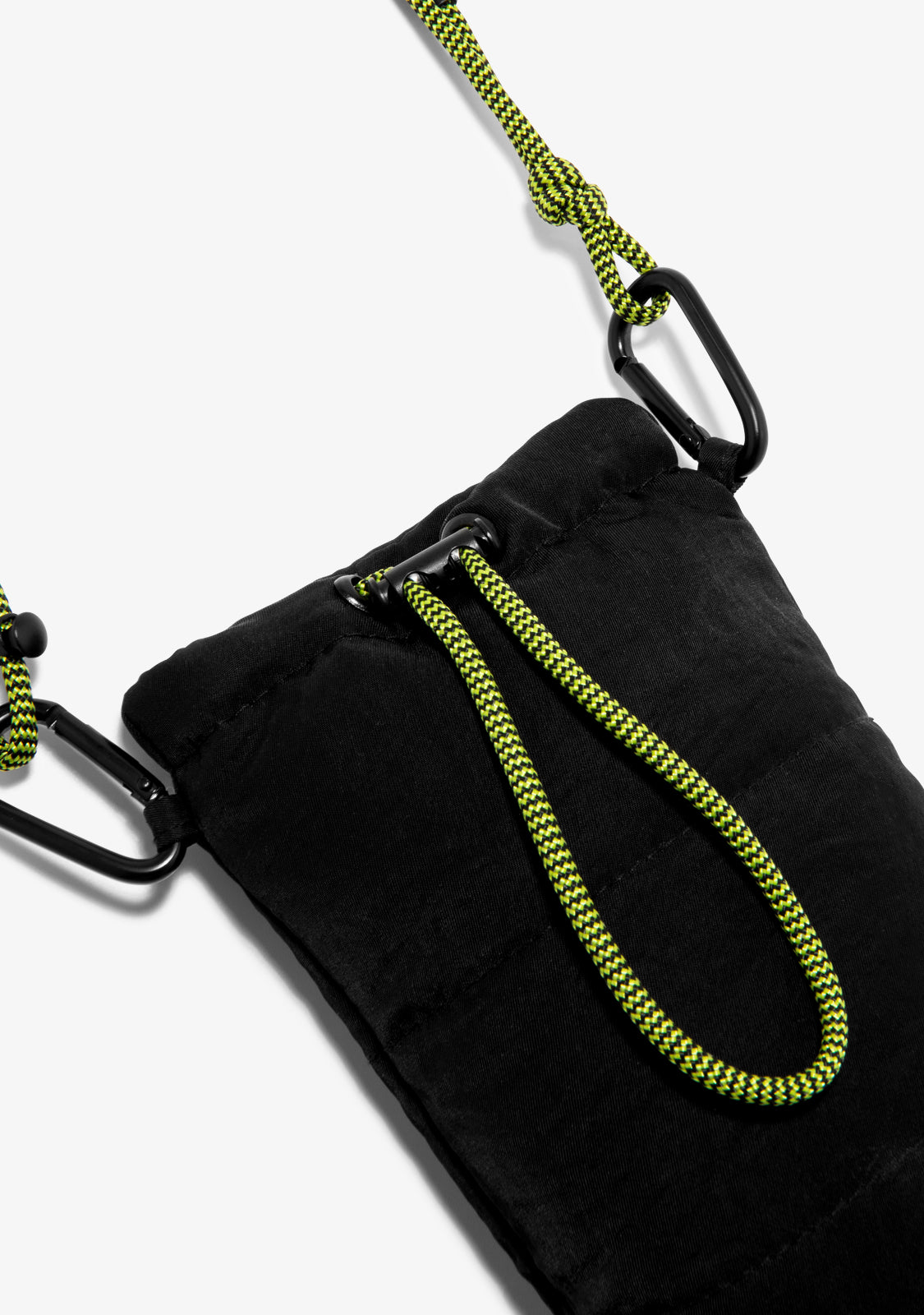 Porta-acessórios com design acolchoado. Para transportar o essencial. Um item imprescindível para quem sai com o básico.
