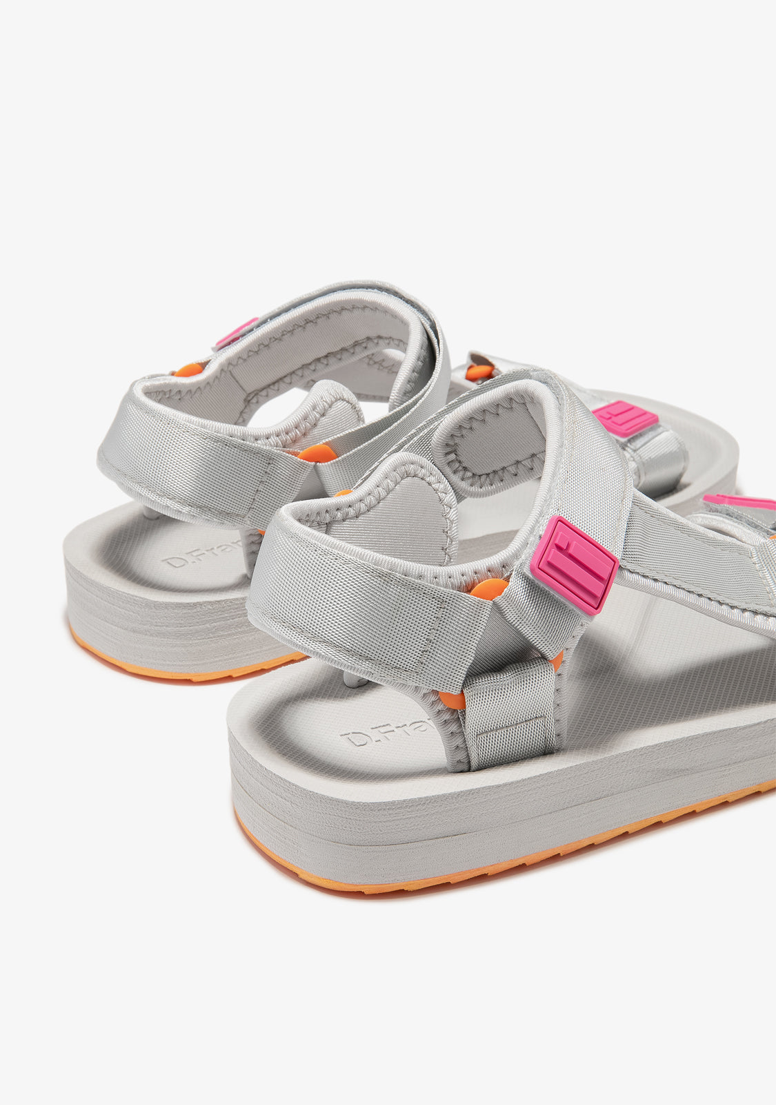 Inspiradas em dias passados ao ar livre. Este design apresenta fechos de fivela triangular e um fecho de tira adesiva. Apresenta um novo acabamento prateado brilhante. Com o emblema D.Franklin tanto na sola como na lateral.