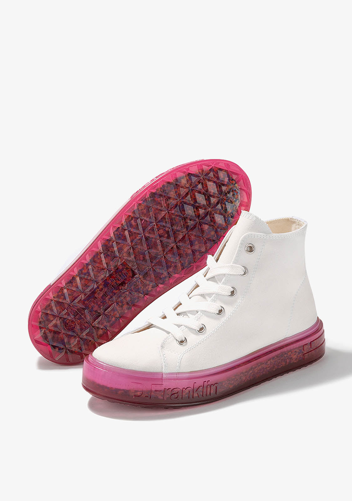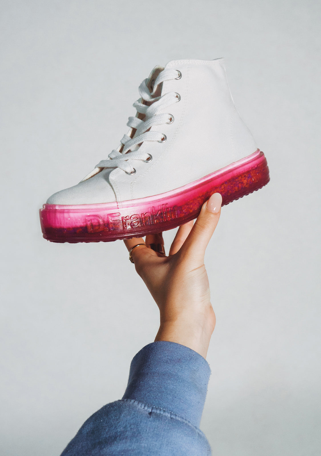 Os ténis inovadores Gumme Superstar White / Pink emergiram de várias influências criativas nos campos da moda e do desporto, agora num design Hi-top. Como mostrado em cada coleção, a D.Franklin está focada em criar estilos modernos e usáveis. FEITO EM ESPANHA