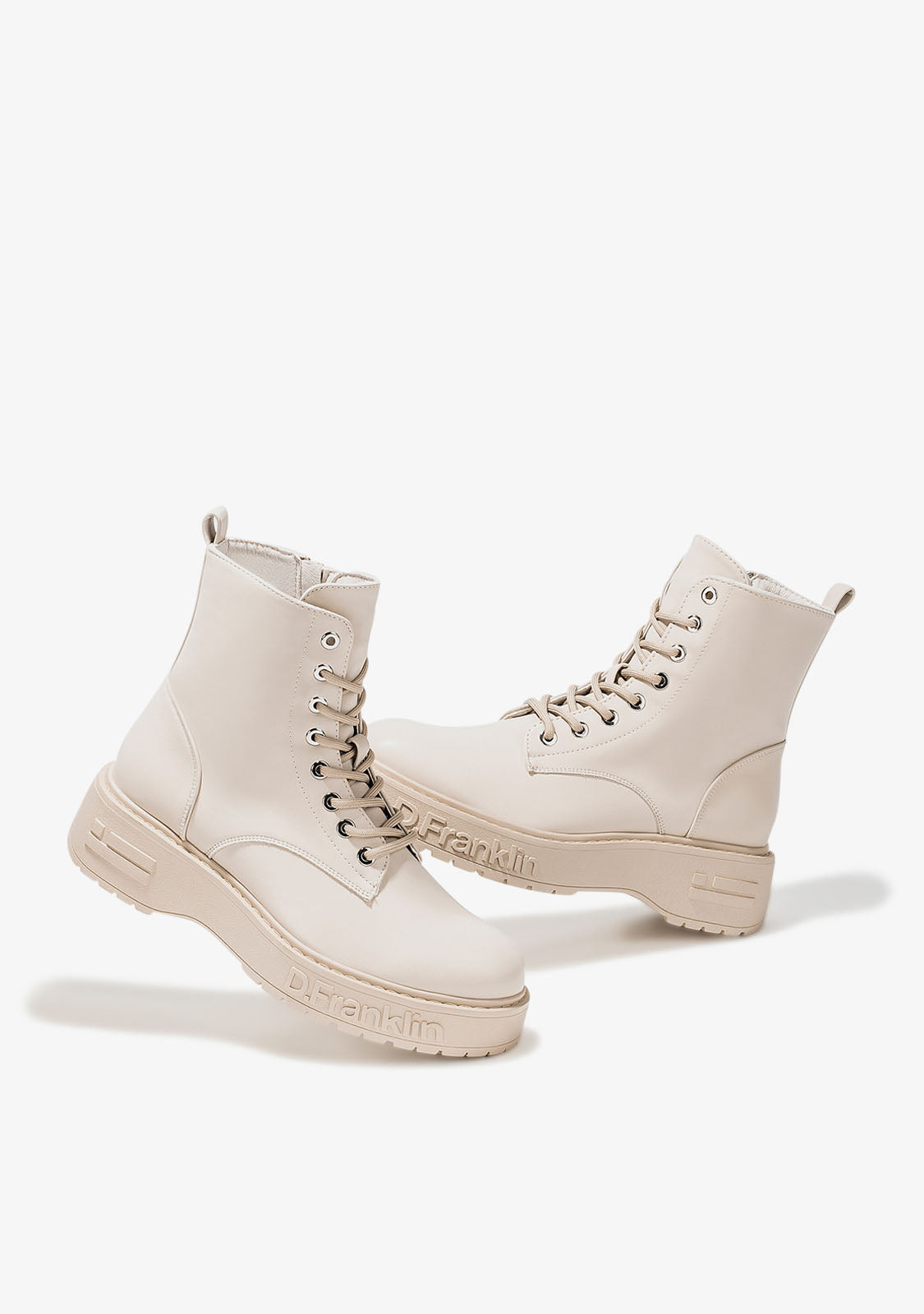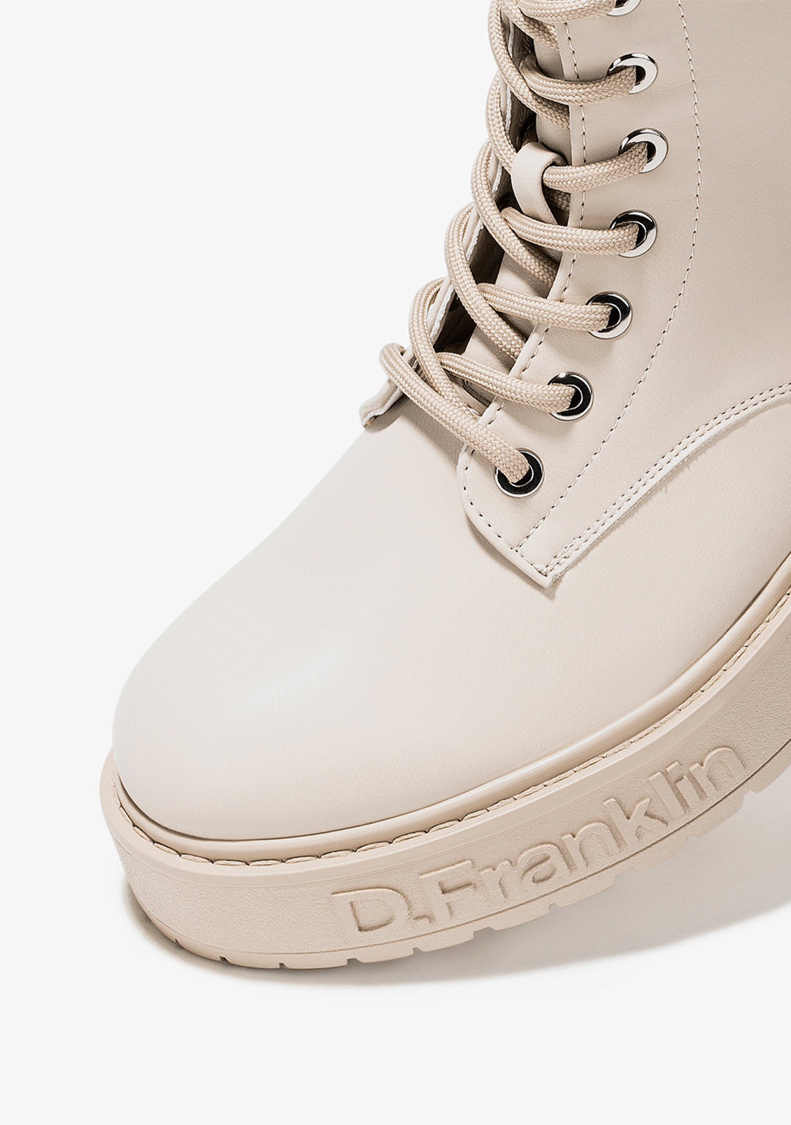 Prepare-se, chegou a hora. A coleção de botas militares femininas da D.Franklin´s é a linha mais trendy da marca graças à versatilidade dos designs e à sua ampla variedade de cores. O modelo Gumme Track Basic Beige é caracterizado por:
