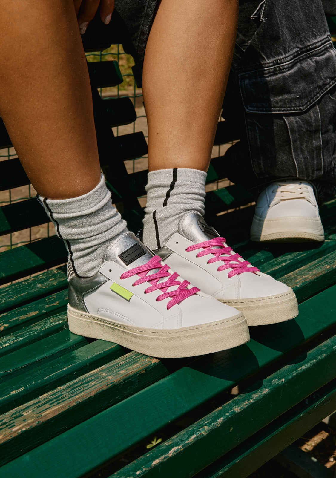 Sapatilhas de cano baixo com detalhes brilhantes. Um design com acabamento metálico inspirado em cores cósmicas.