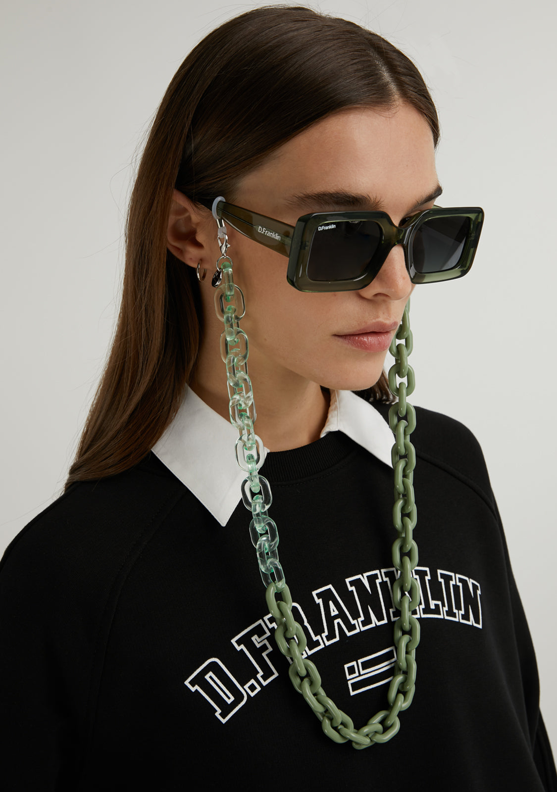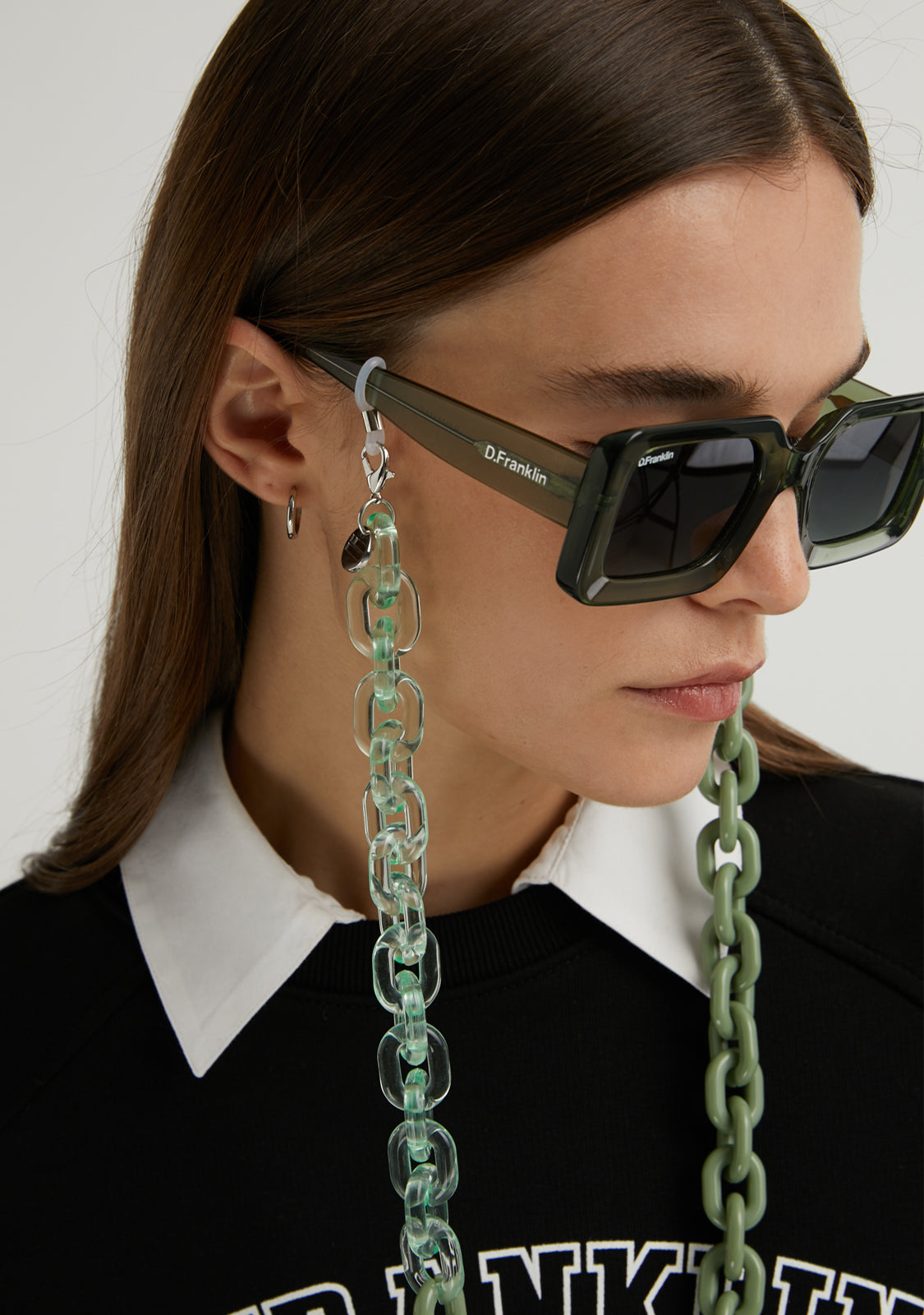 O momento chegou. As novas correntes de óculos D.Franklin estão aqui. Os acessórios mais desejados que definem tendências e quebram com tudo o que é conhecido. Escolha entre uma ampla variedade de designs únicos e exiba os seus óculos com orgulho. O modelo Link Chain Mint traz um estilo original e diferente graças à sua combinação de cores.