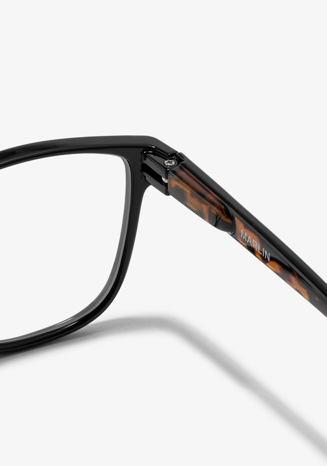 O modelo Marlin Square Blue Block Black / Carey é caracterizado por: