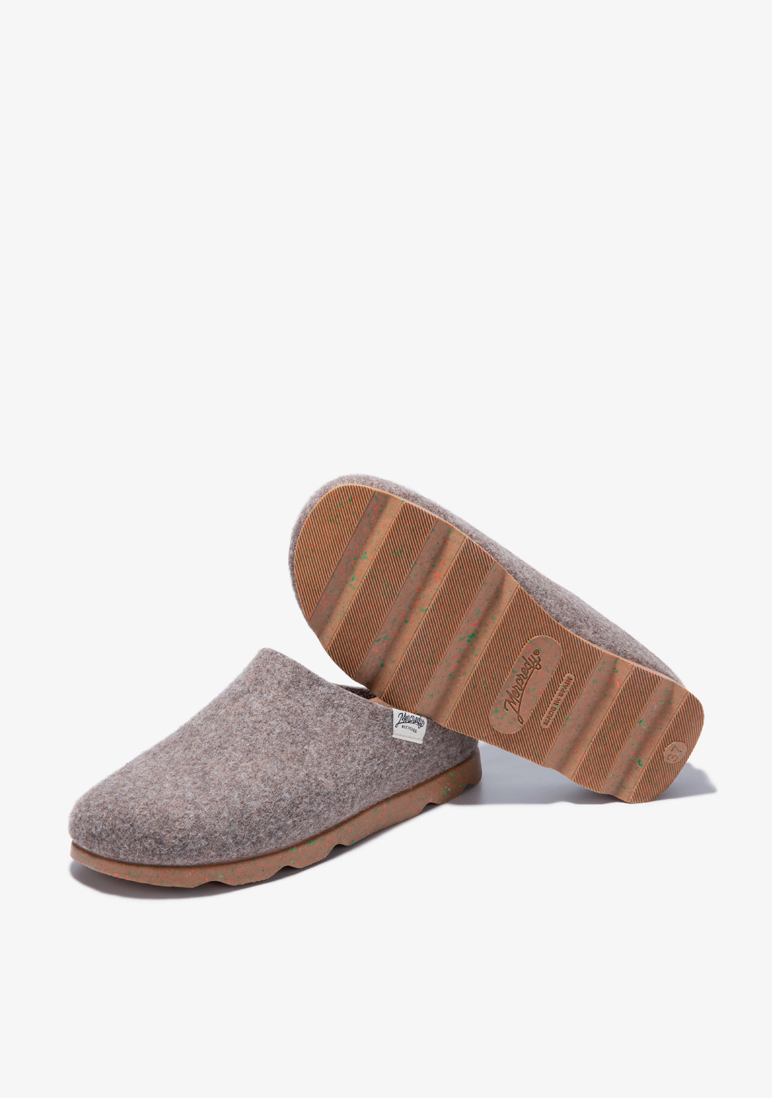 Proteja-se do frio com este design feito de materiais reutilizáveis. O seu cabedal de feltro PET reciclado apresenta uma bege com pequenos detalhes castanhos. Além disso, a sola contrastante é feita de borracha natural bicolor feita de partículas recicladas.