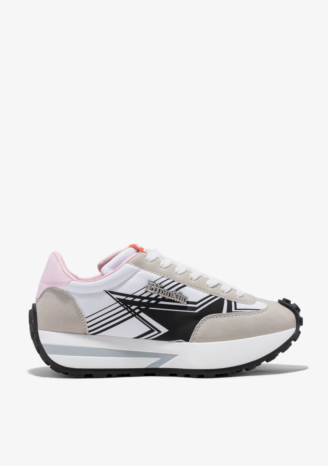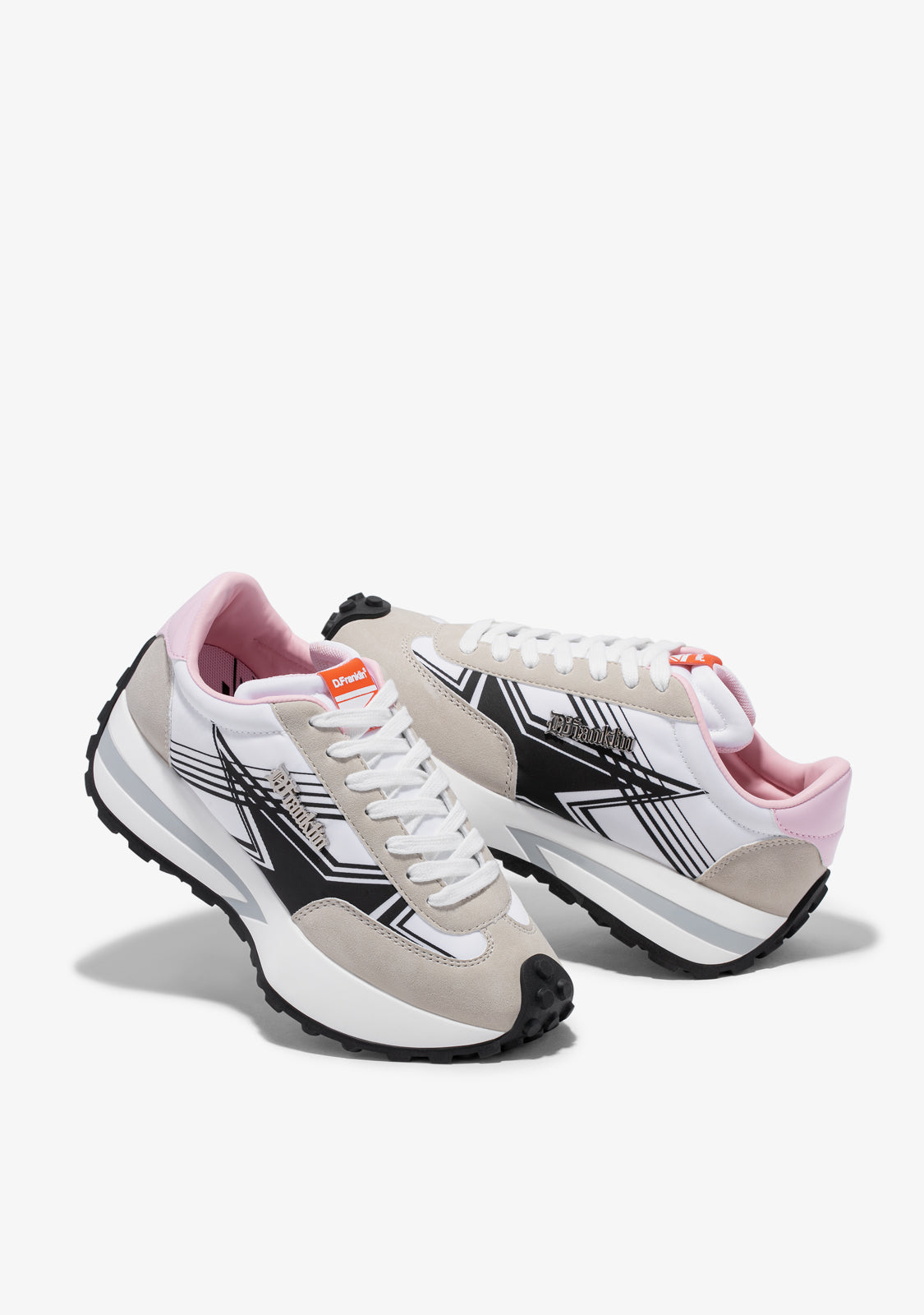 Sapatilha inspirada no ritmo da cidade. Design na moda construído a partir de materiais livres de crueldade. Impressão de estrela preta na lateral. Detalhe em metal D.Franklin. Plataforma branca de 4 cm. Solado especial em TR antideslizante em preto.
