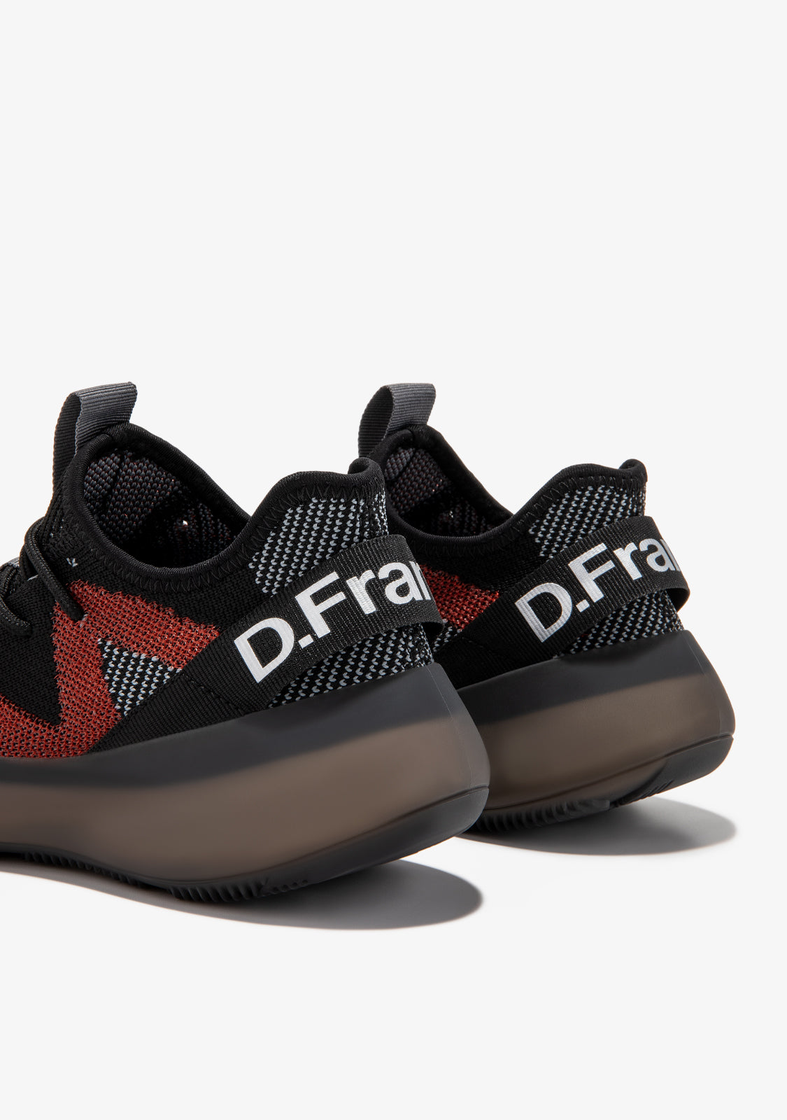 Este modelo D.Franklin é feito com detalhes em preto e vermelho. Têm uma sola fina com um acabamento translúcido para conforto e flexibilidade. Também apresentam o nosso emblema na frente e atrás. Tecido leve com um acabamento em malha respirável.
