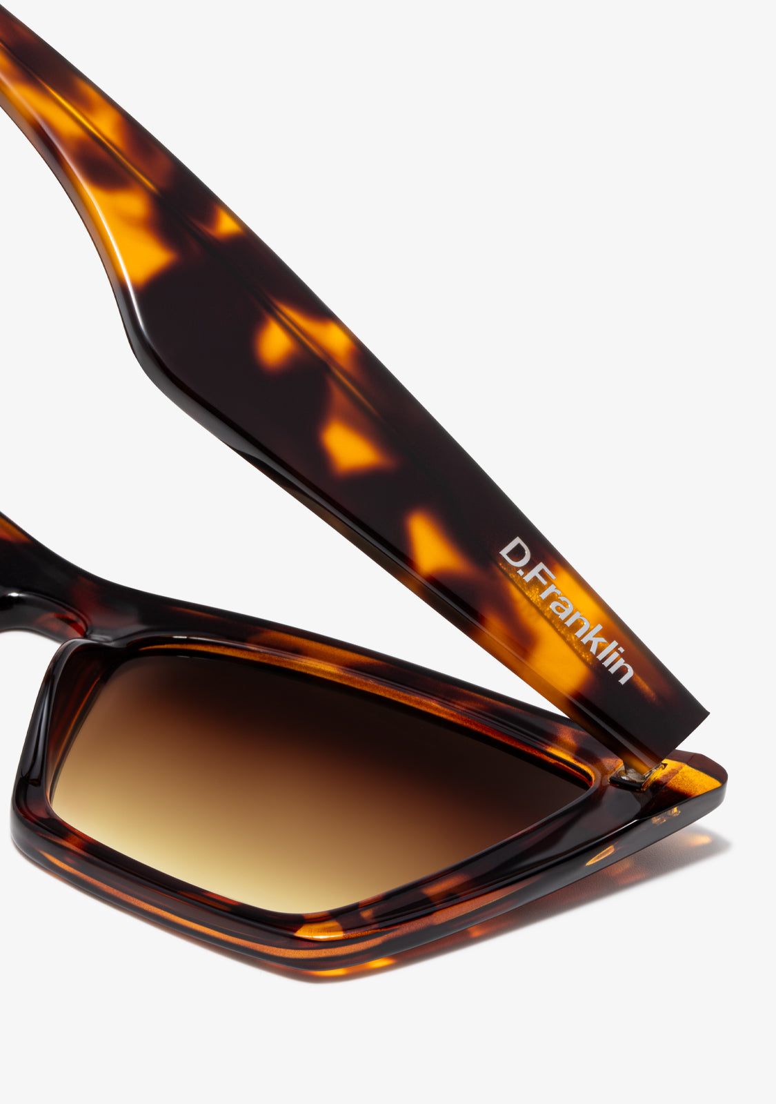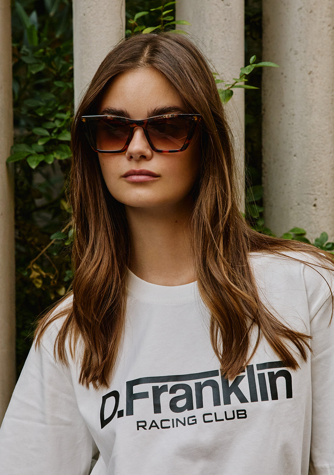 O nosso modelo Monaco em tons de castanho apresenta os detalhes mais distintos da D.Franklin, o logótipo gravado nas hastes e o emblema na lente. A largura da lente é de 55 mm e a frente tem 152 mm. As hastes laterais têm 150 mm de comprimento, perfeitas para todos os rostos.