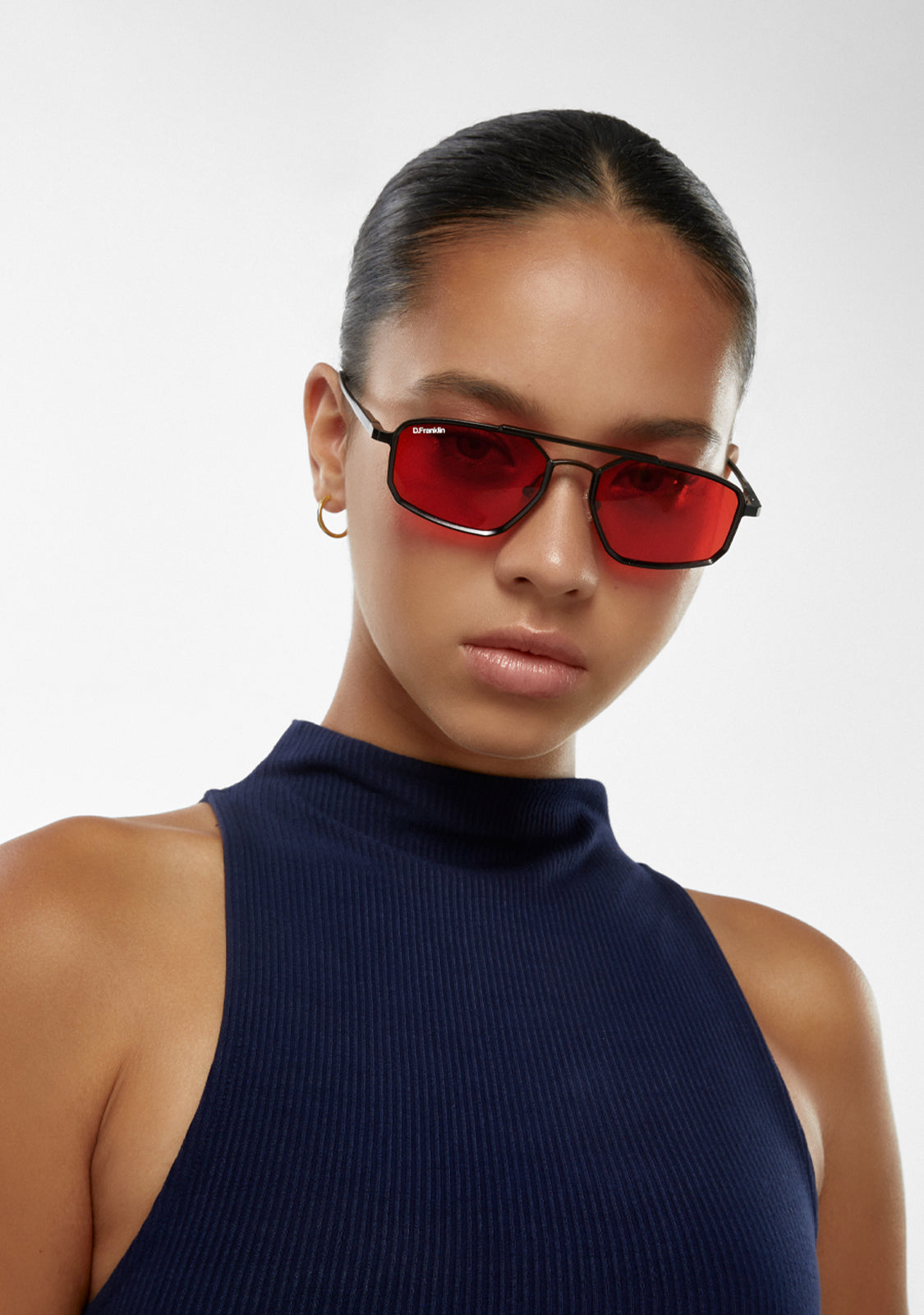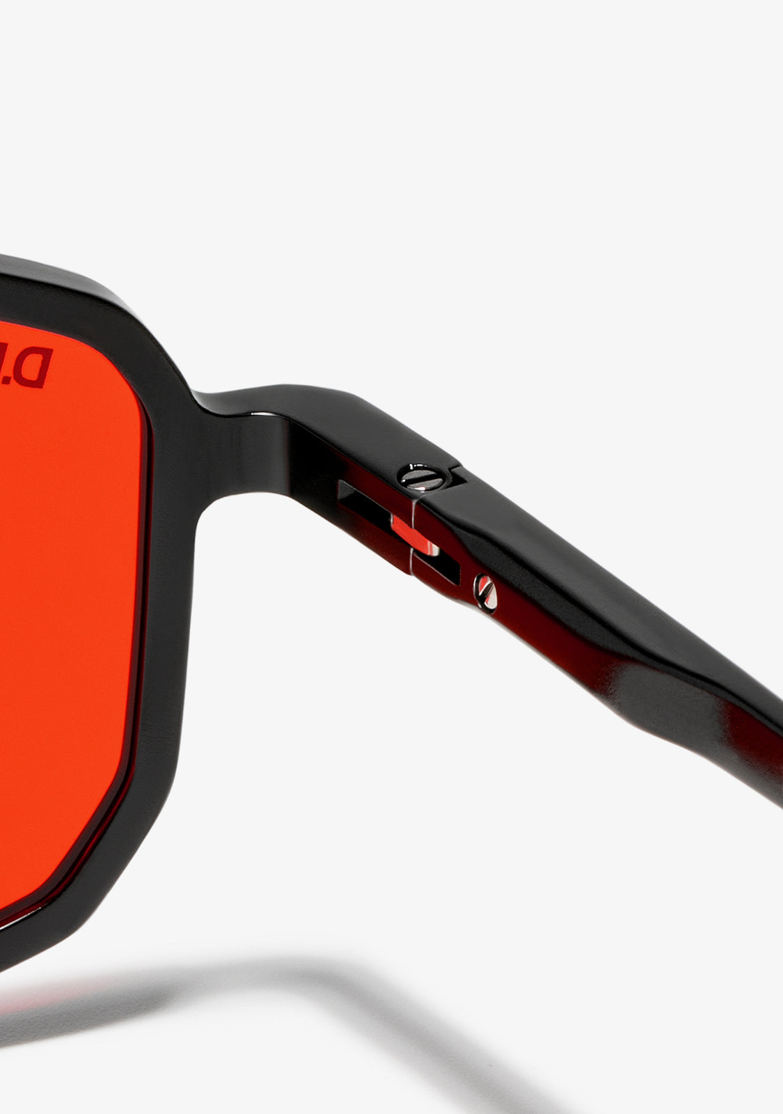 Graças à sua construção em alumínio, estes óculos são ultra-leves. Eles apresentam lentes polarizadas vermelhas e uma armação preta mate para uma estética distintiva. O design apresenta o nosso emblema na lente direita e um logótipo metálico na lateral das hastes. Tem uma armação frontal de 143 mm e uma largura de lente de 52 mm, que se adapta à maioria dos rostos. As hastes têm 138 mm de comprimento.