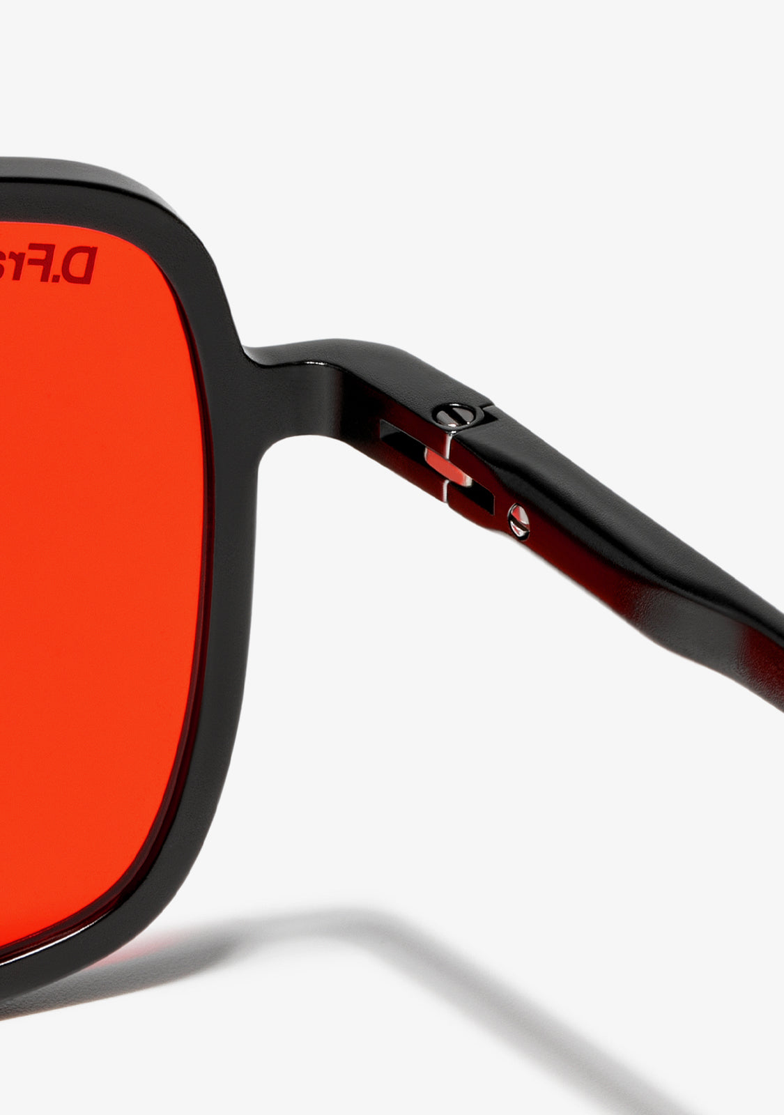 Graças à sua construção em alumínio , estes óculos são ultra-leves. Lentes polarizadas vermelhas e uma armação preta reforçam o design distintivo. Estes óculos de sol apresentam o nosso emblema na lente direita e um logótipo metálico na lateral das hastes. Também possui uma armação frontal de 140 mm e uma largura de lente de 50 mm, que se adapta à maioria dos rostos. As hastes têm 138 mm de comprimento.