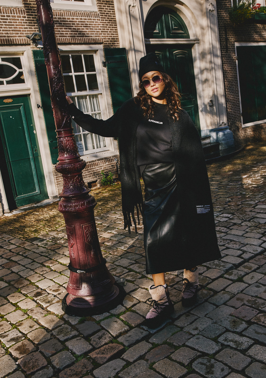 Este design vem diretamente da estética de rua. Apresenta um tecido de malha suave e detalhe da etiqueta D.Franklin na lateral. Uma peça preta projetada para definir a tendência.