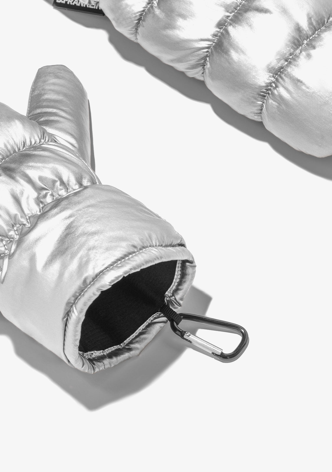 Estamos a ir para o estilo nórdico com este modelo em tom prateado com um acabamento texturizado acolchoado. Também apresenta tecido repelente à água e o nosso emblema na etiqueta preta exterior.