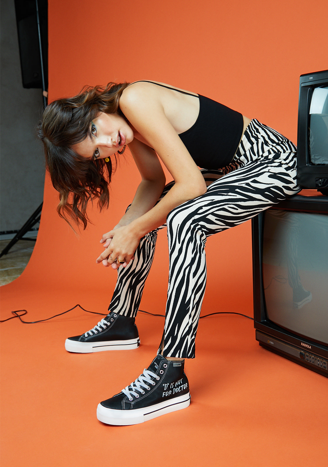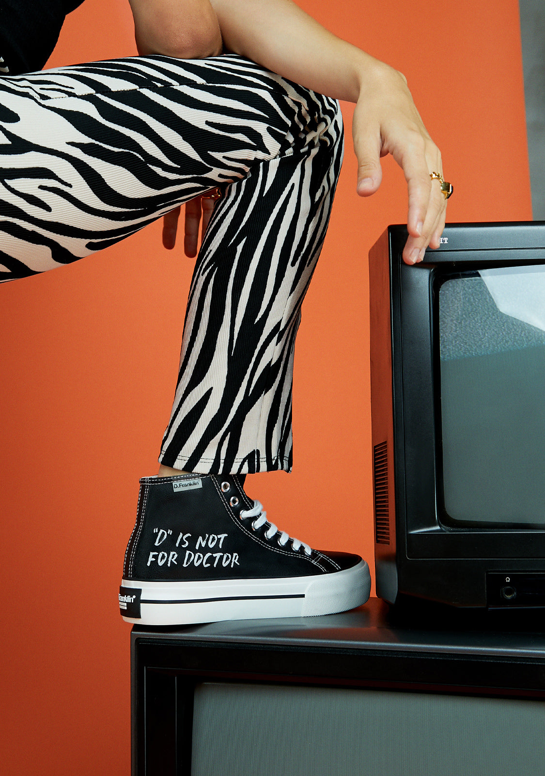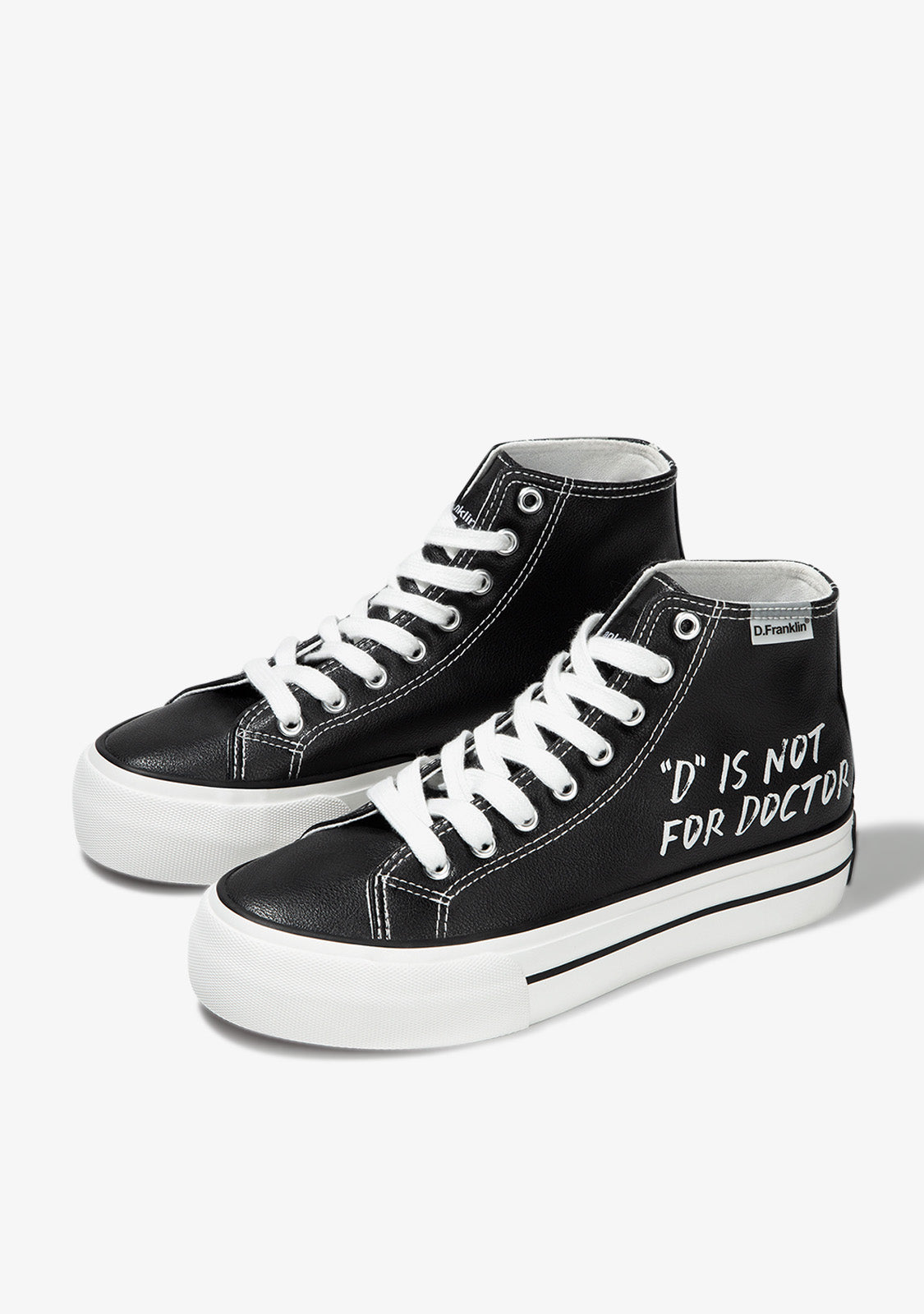 A edição limitada One Way é inspirada nas coleções mais casuais, combinada com a personalidade e o estilo mais marcado da D.Franklin®. Os One Way D Is Not Black são os ténis Hi-top perfeitos para todos os tipos de novas estradas. Um modelo de estilo urbano que combina tendências atuais com detalhes originais dos seus materiais. Feitos de couro sintético preto, desenhados a partir da nossa afirmação ‘D is not for Doctor’.