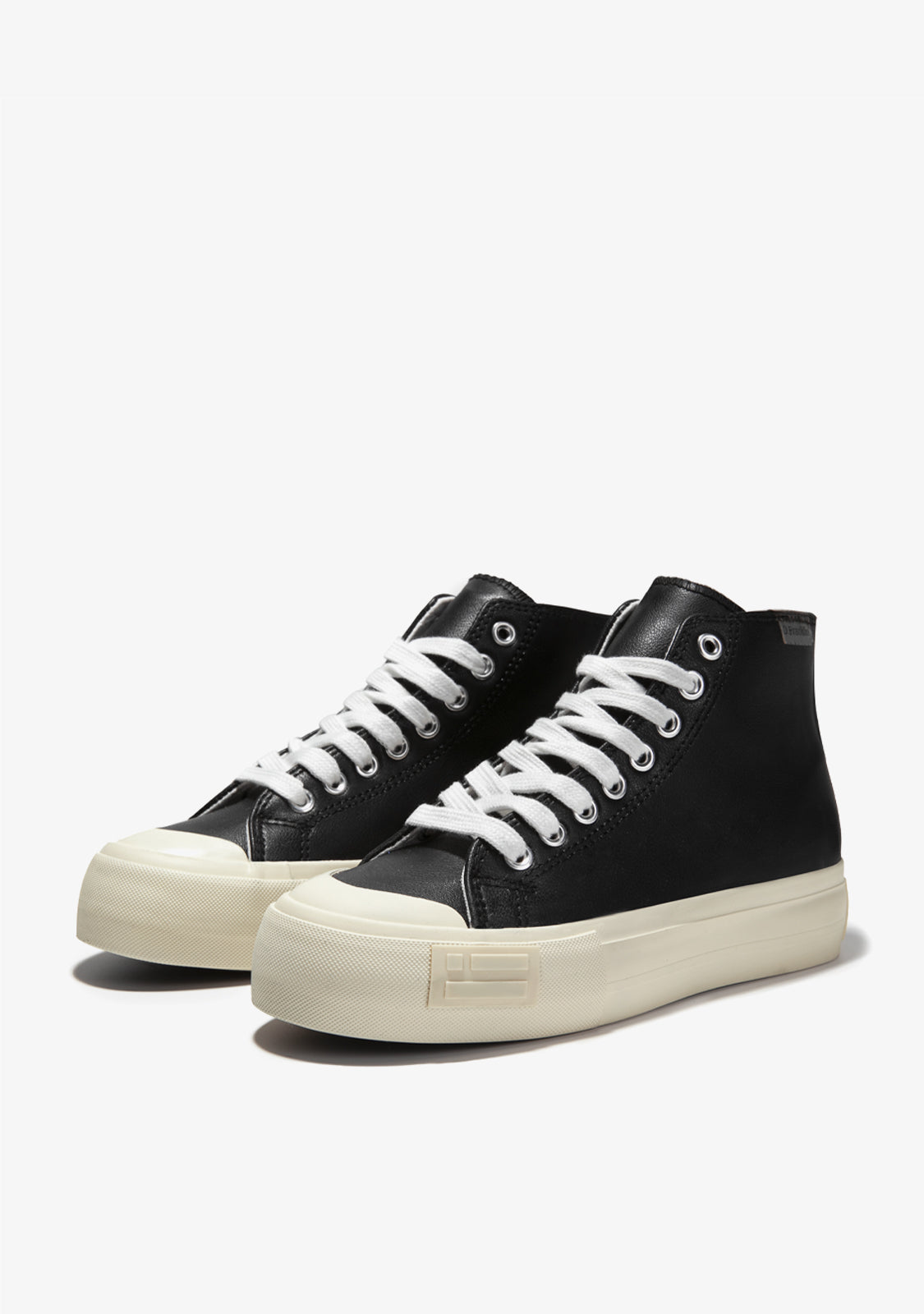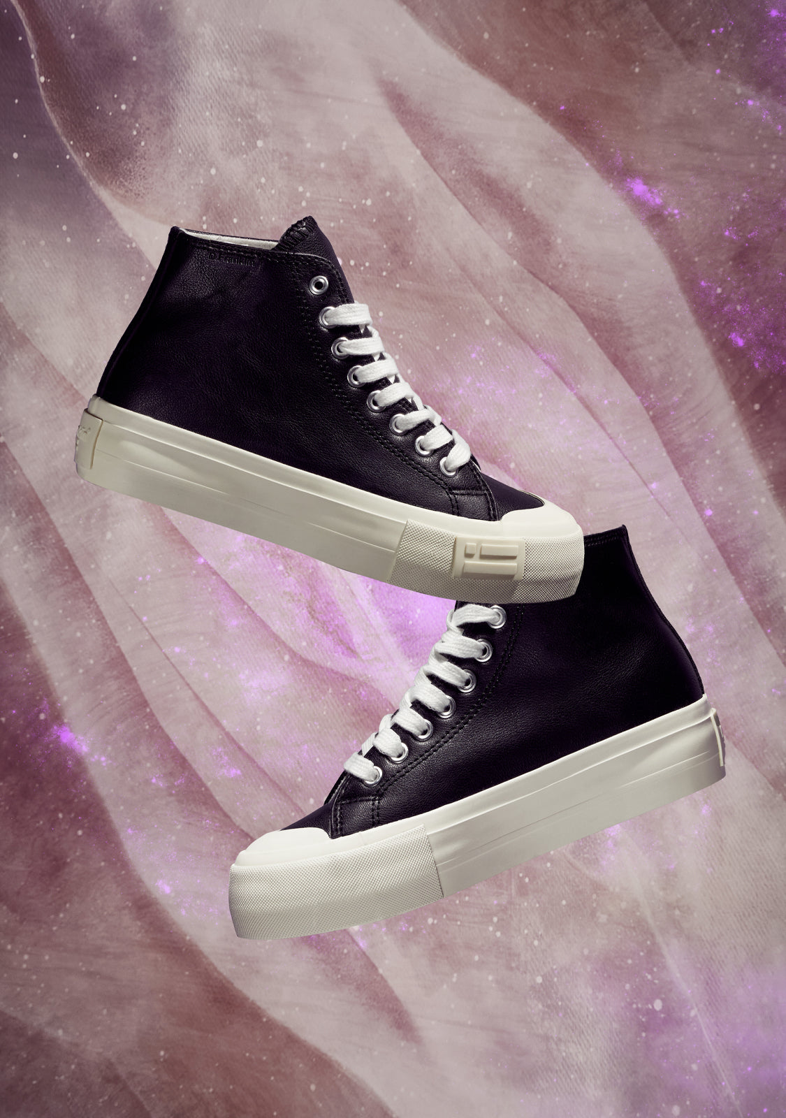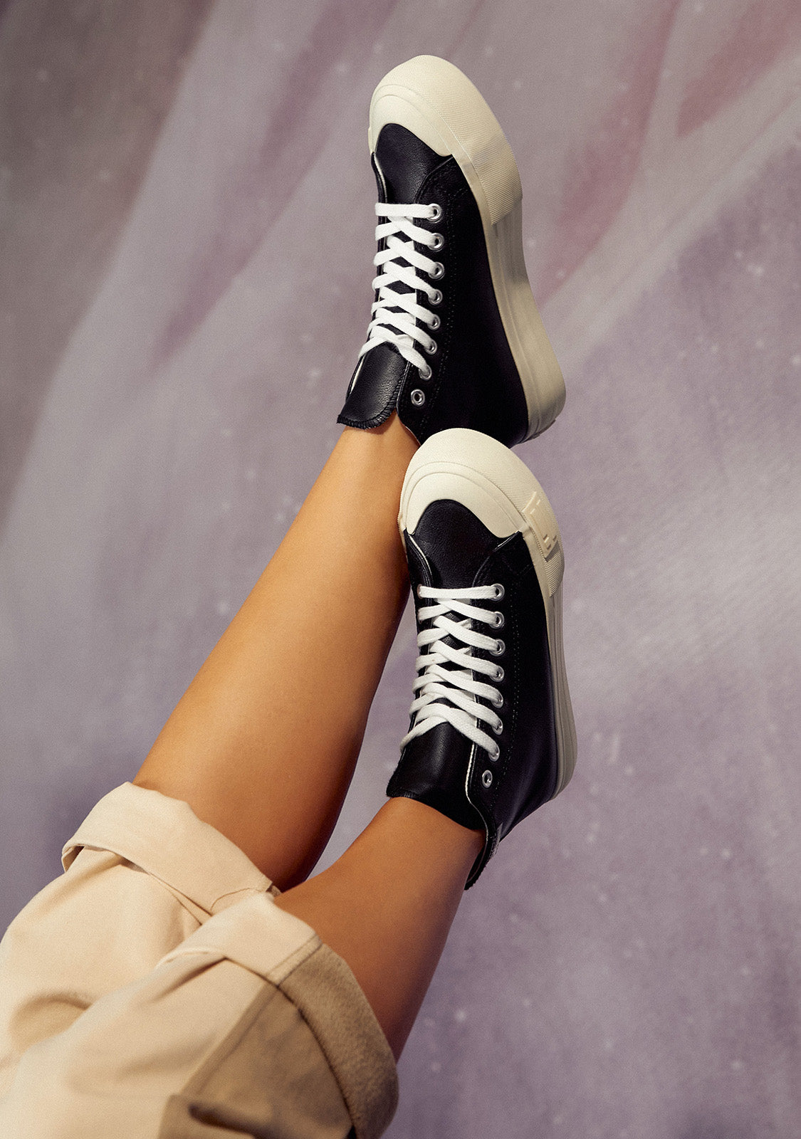 D.Franklin ténis de cano alto de uma só cor. Sneakers com tons neutros e uma estética descontraída. Um lembrete de que também podes seguir a tendência com um básico.