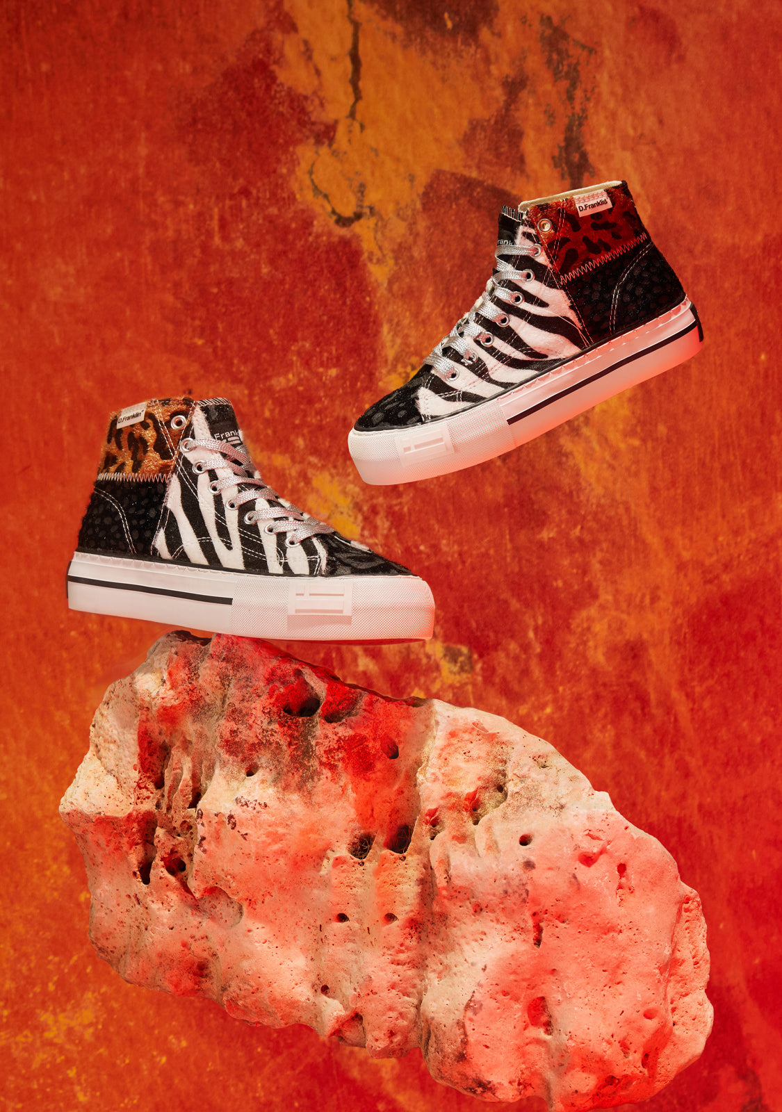 Ténis de cano alto D.Franklin desenhados com uma combinação ousada de materiais e texturas. Uma proposta desafiante para romper com a convencionalidade e deixar uma marca a cada passo.