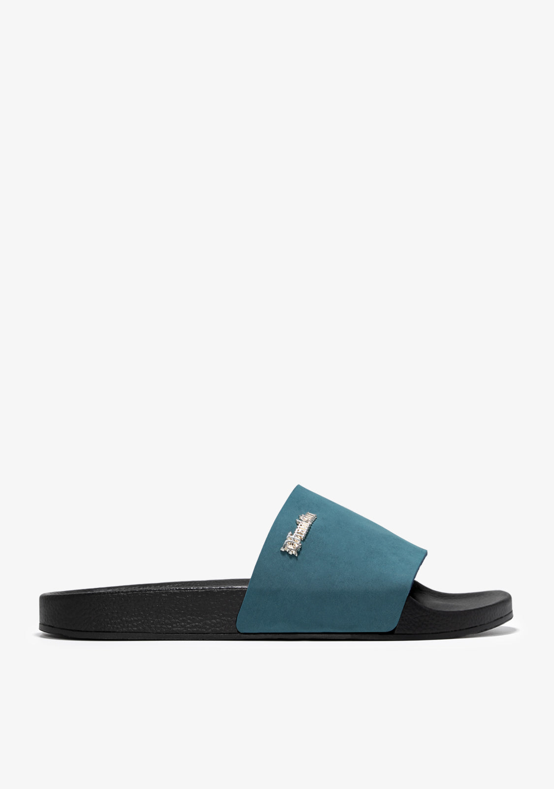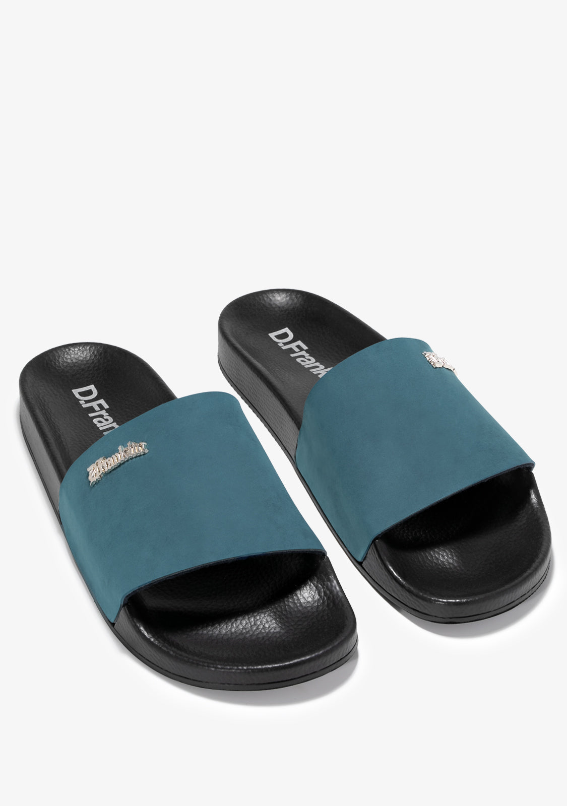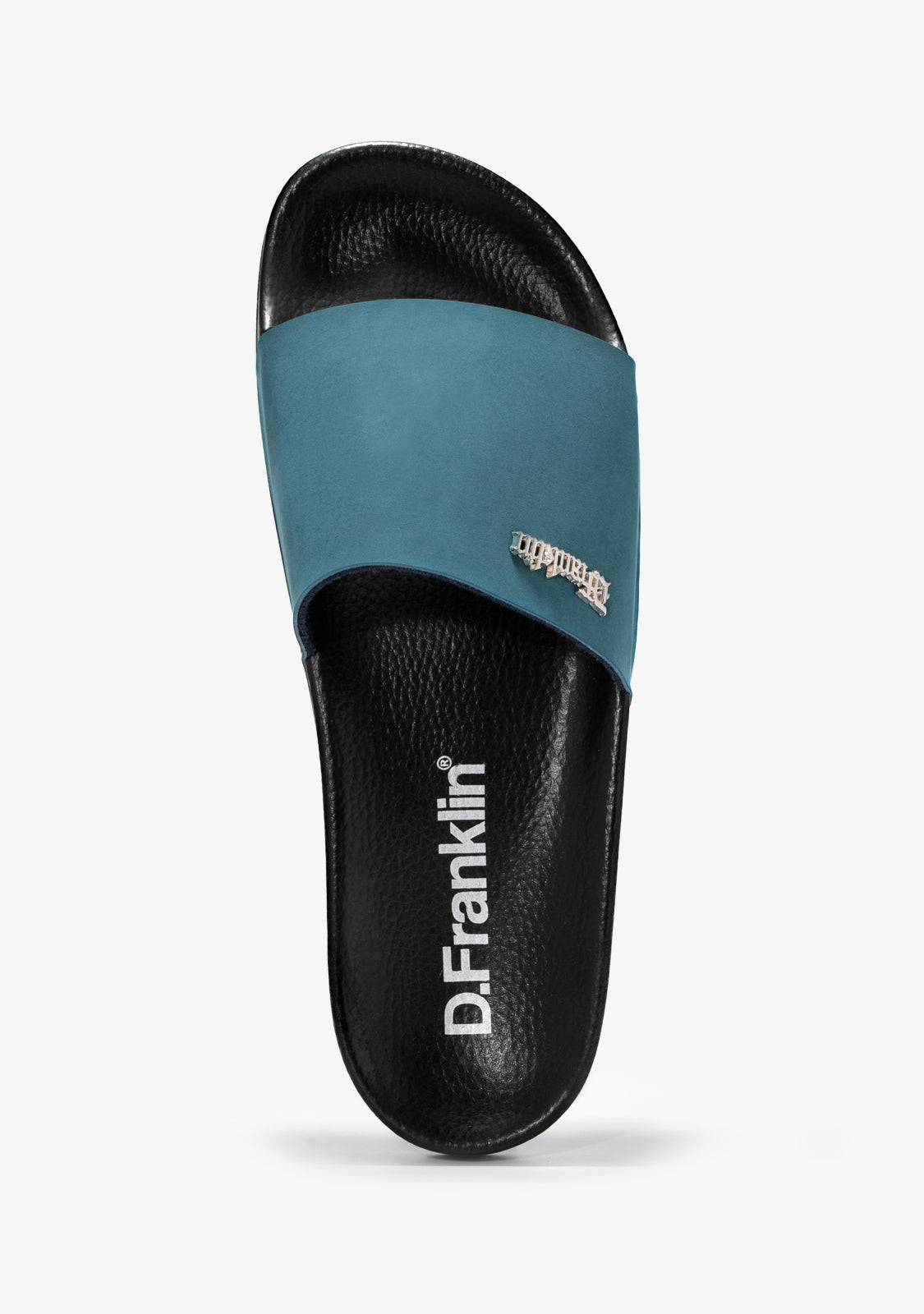 As sandálias D.Franklin Pala Slide Patent apresentam uma tira sintética larga e mate em azul para um ajuste seguro. Elas também apresentam o nosso emblema D.Franklin na parte superior. O design da palmilha é moldado para se ajustar perfeitamente à forma do pé.