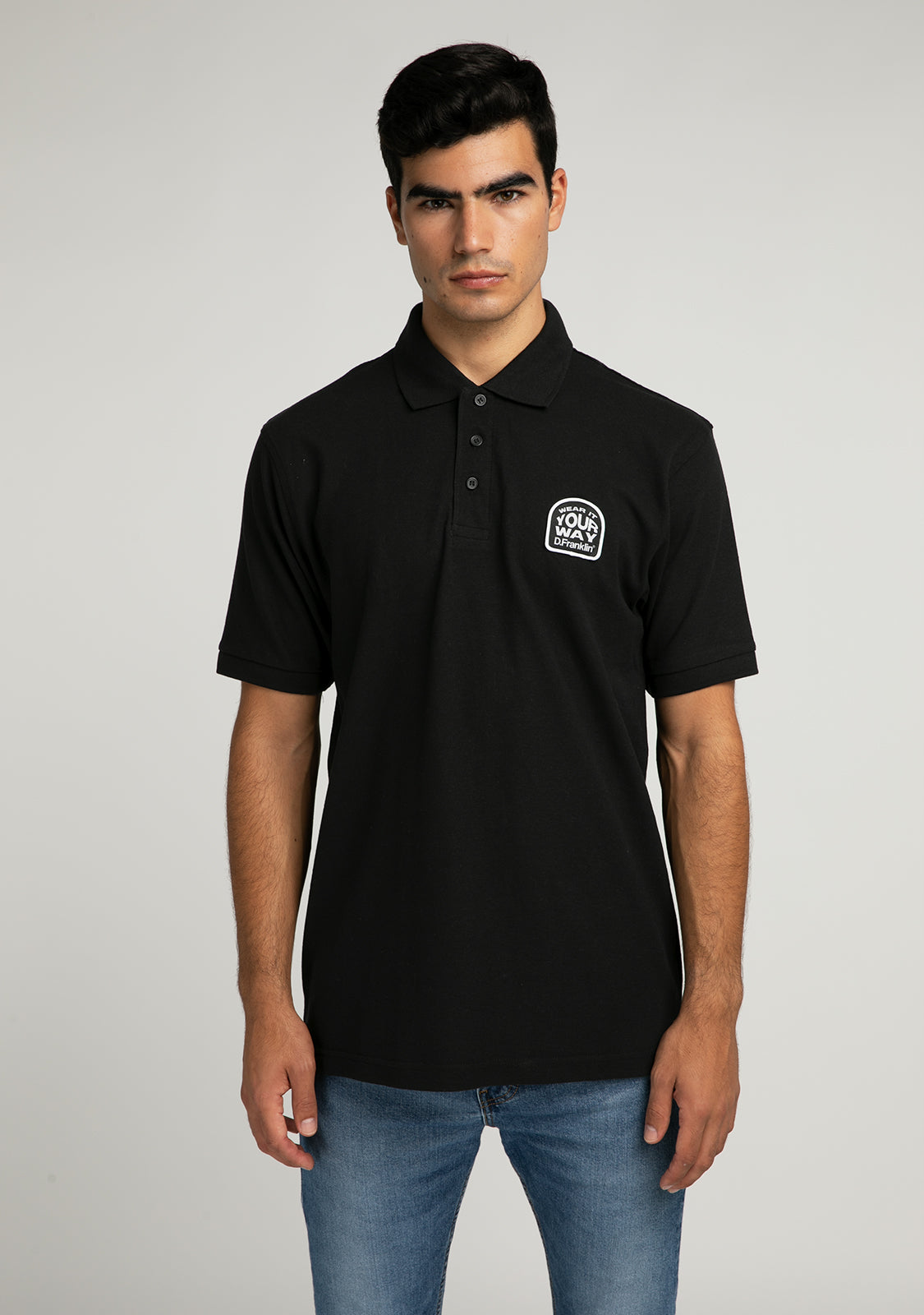 Junte-se ao estilo D.Franklin com a sua mais recente coleção de camisetas polo para homens. Caracterizadas pela sua simplicidade, são a combinação perfeita das cores mais básicas e da elegância de uma peça necessária no seu guarda-roupa. A Polo Wear It Black é feita de algodão, proporcionando grande respirabilidade e conforto. Acabada em branco, combinada com o logótipo D.Franklin Wear It aplicado ao lado.